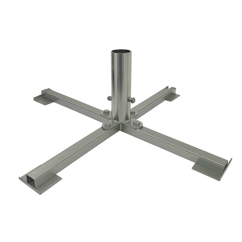 Stabilny stojak ze stali nierdzewnej przeznaczony do centralnych parasoli gastronomicznych o średnicy do 500 cm. Nadaje się do płyt betonowych lub granitowych o wymiarach 50×50 cm. Dla prawidłowego działania należy dobrać odpowiedni ciężar płytek i zawsze stosować adapter.