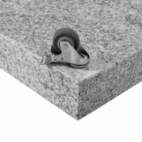 Granitowy stojak, który można łatwo przesunąć do żądanej pozycji na tarasie dzięki kółkom na spodzie. Odpowiedni do parasoli o średnicy dachu do 350 cm. Granit jest niezwykle twardy i trwały, więc stojak jestcałkowicie odporny na warunki atmosferyczne. Musimy jednak podkreślić, że granit jest produktem naturalnym, więc tekstura i kolor mogą się różnić.
