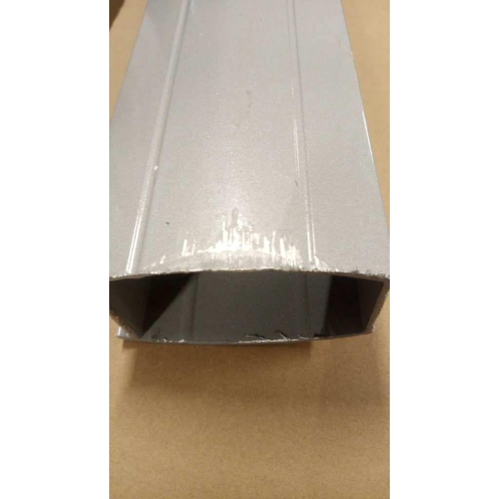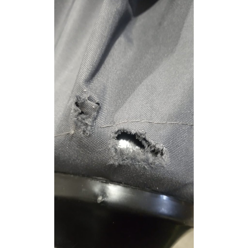 Powód 2. jakości: Parasol ma lekko zarysowaną konstrukcję. Pokrowiec jest dziurawy przy czubku (patrz. zdjęcie) i miejscami wgnieciony. Opakowanie parasola jest naprawiane. W pełni funkcjonalny.