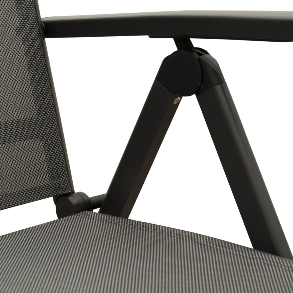 Krzesło ogrodowe składane ACTIVE w kratkę wykonane jest z materiałów bezobsługowych. Solidna aluminiowa konstrukcja w kolorze antracytowym jest uzupełniona splotem z wysokiej jakości sztucznej tkaniny w kolorze srebrnej kratki.