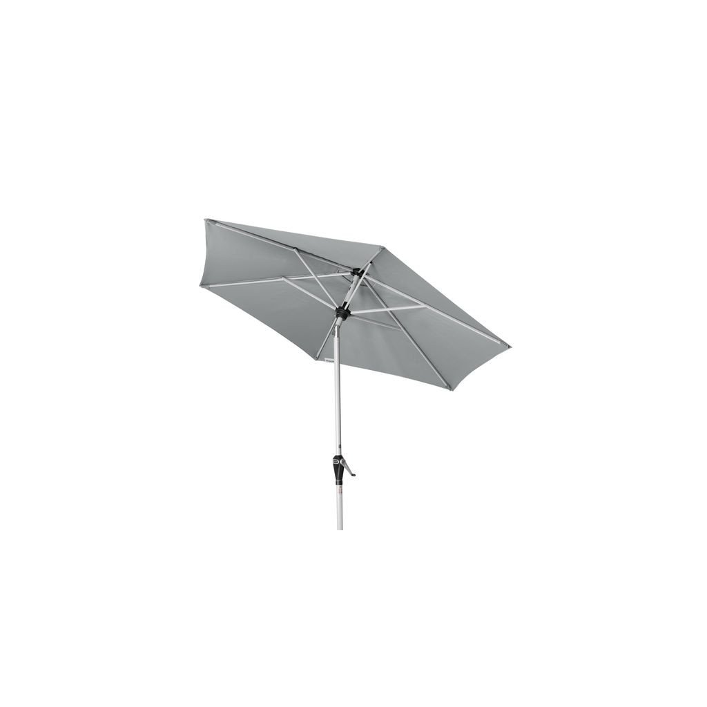 Parasol ma stabilną aluminiową konstrukcję, która jest wyposażona w korbę do łatwego otwierania i zamykania. Wygodna funkcja automatycznego uchylania pozwala na automatyczne odchylenie dachu poprzez proste przekręcenie klamki. Wysokość parasola można regulować w zakresie 15 cm. Pokrowiec parasola wykonany jest z tkaniny 100% poliestrowej odpornej na warunki atmosferyczne z dobrą stabilnością światła i dobrą ochroną UV 50+ SPF. Dzięki zaworowi powietrznemu w dachu, gorące letnie powietrze nie gromadzi się pod parasolem.