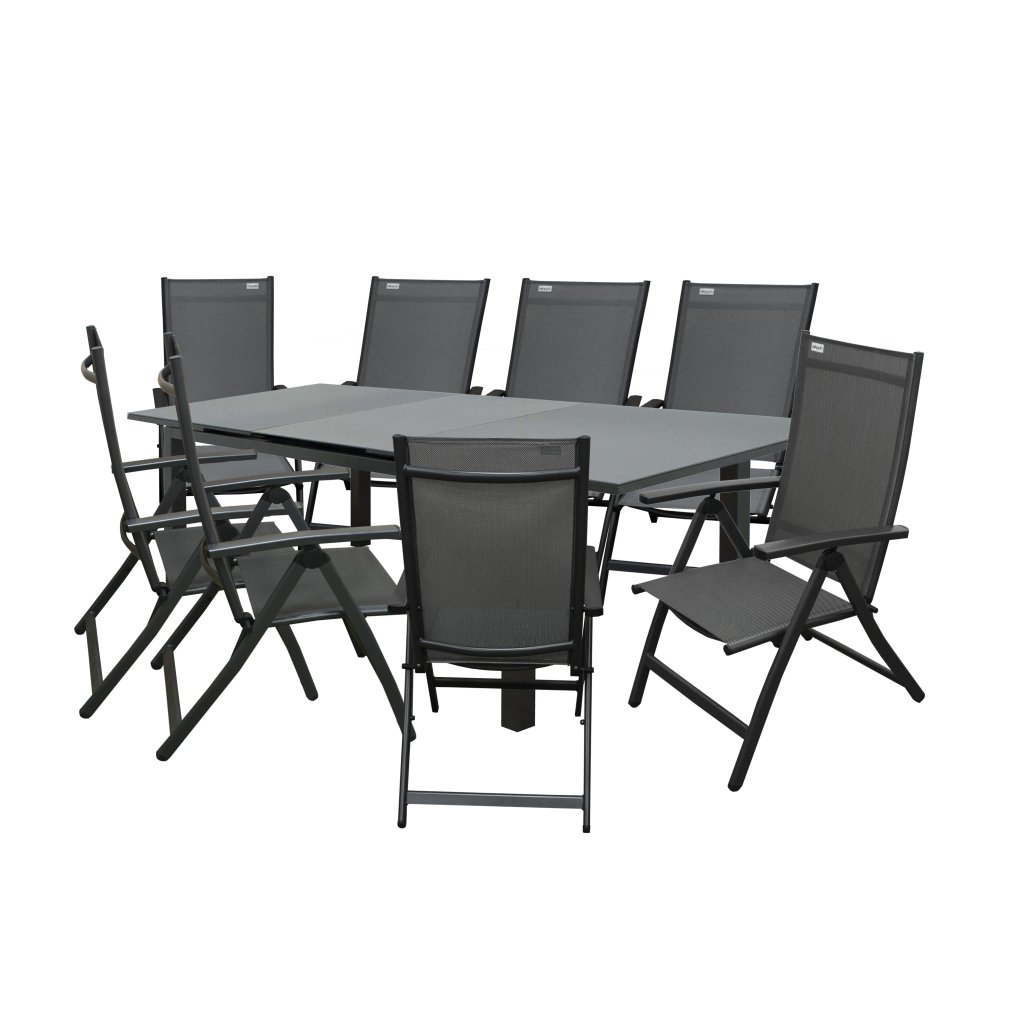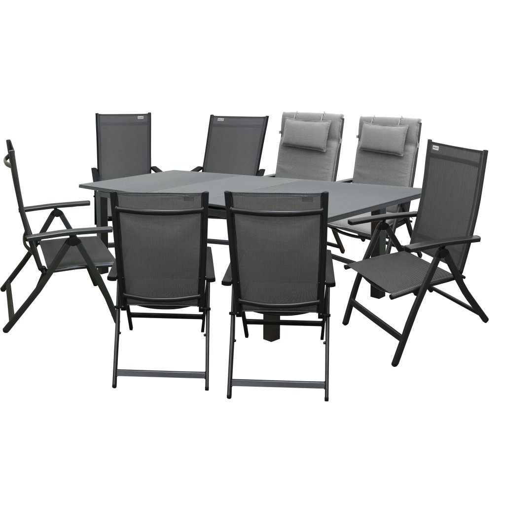 Krzesło ogrodowe z regulacją ACTIVE jest wykonane z materiałów niewymagających konserwacji. Solidna aluminiowa konstrukcja w kolorze antracytowym jest uzupełniona splotem z wysokiej jakości sztucznego materiału w kolorze szarym.
