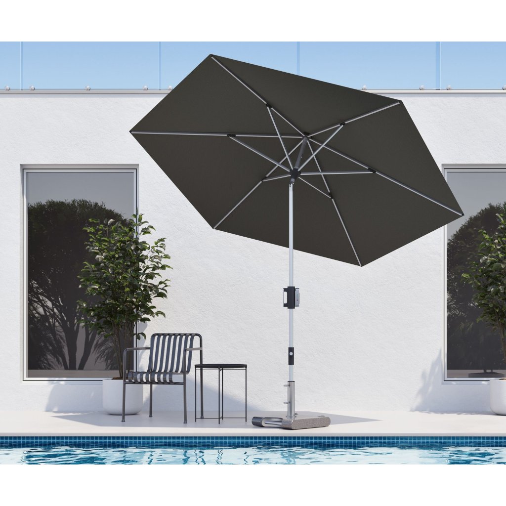 Luksusowy parasol ogrodowy od marki premium Knirps jest regulowany na wysokość do 30 cm i wyposażony w mechanizm korbowy umożliwiający łatwe pochylanie. Posiada lekką i solidną aluminiową konstrukcję oraz wysokiej jakości pokrowiec z wysoką ochroną przed promieniowaniem UV SPF 80.