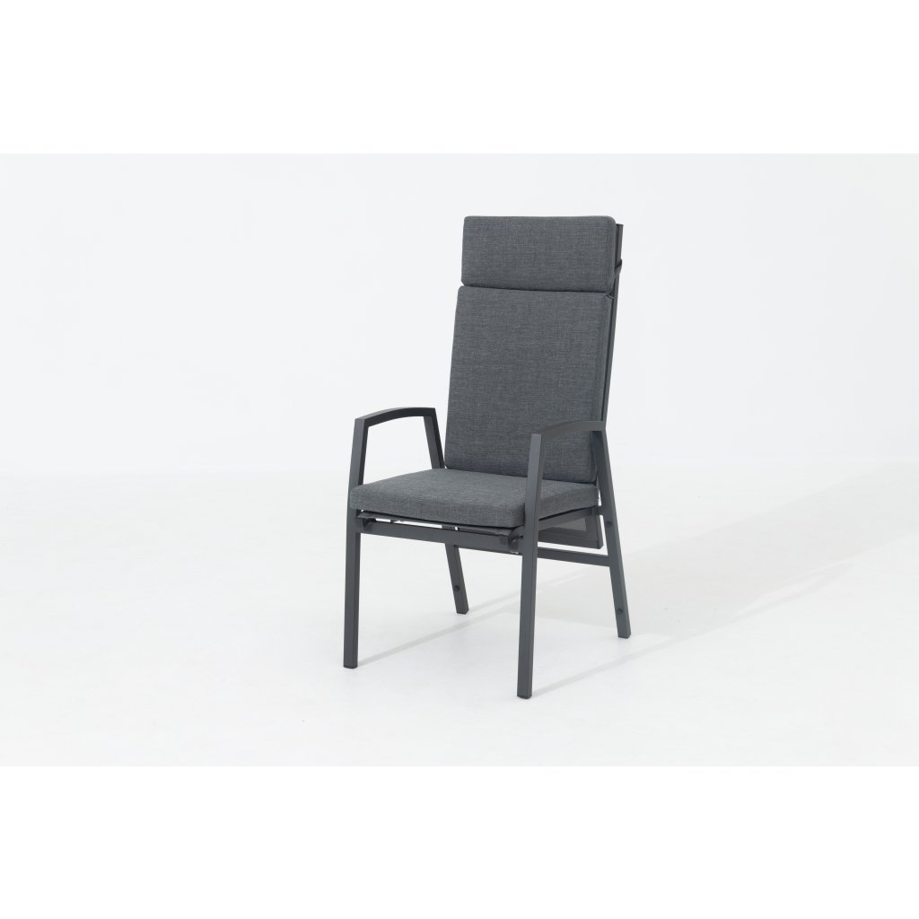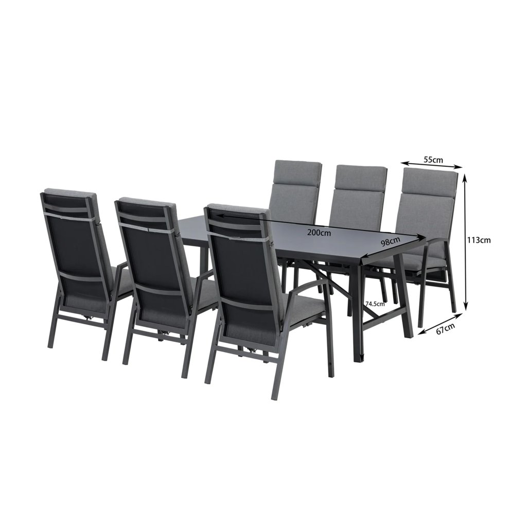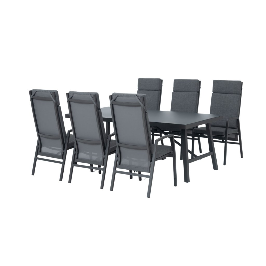 Ten 7-elementowy zestaw wykonany jest z lekkiej i wytrzymałej aluminiowej konstrukcji w nowoczesnym kolorze antracytowym, która jest łatwa w utrzymaniu i doskonale odporna na warunki atmosferyczne.