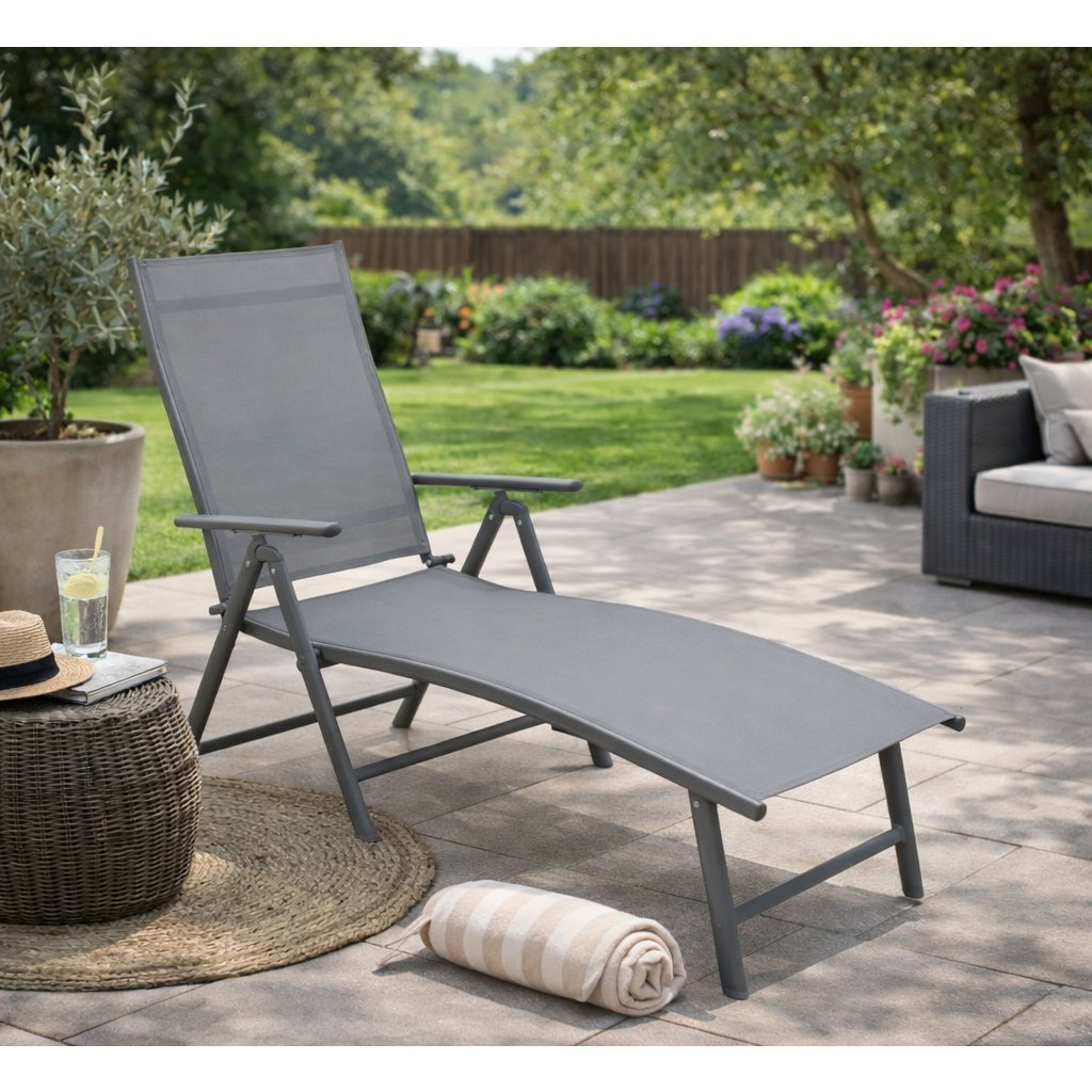 Leżak ogrodowy Bali ma wzmocnioną aluminiową szarą konstrukcję i szare wykończenie z sztucznej tkaniny. Jest łatwy w utrzymaniu, odporny na warunki atmosferyczne i dzięki zastosowaniu wysokiej jakości materiałów może pochwalić się również długą żywotnością. Można go ustawić w 7 pozycjach, a także łatwo rozkładać i składać. Po złożeniu leżak jest kompaktowy i nie wymaga dużo miejsca do przechowywania.