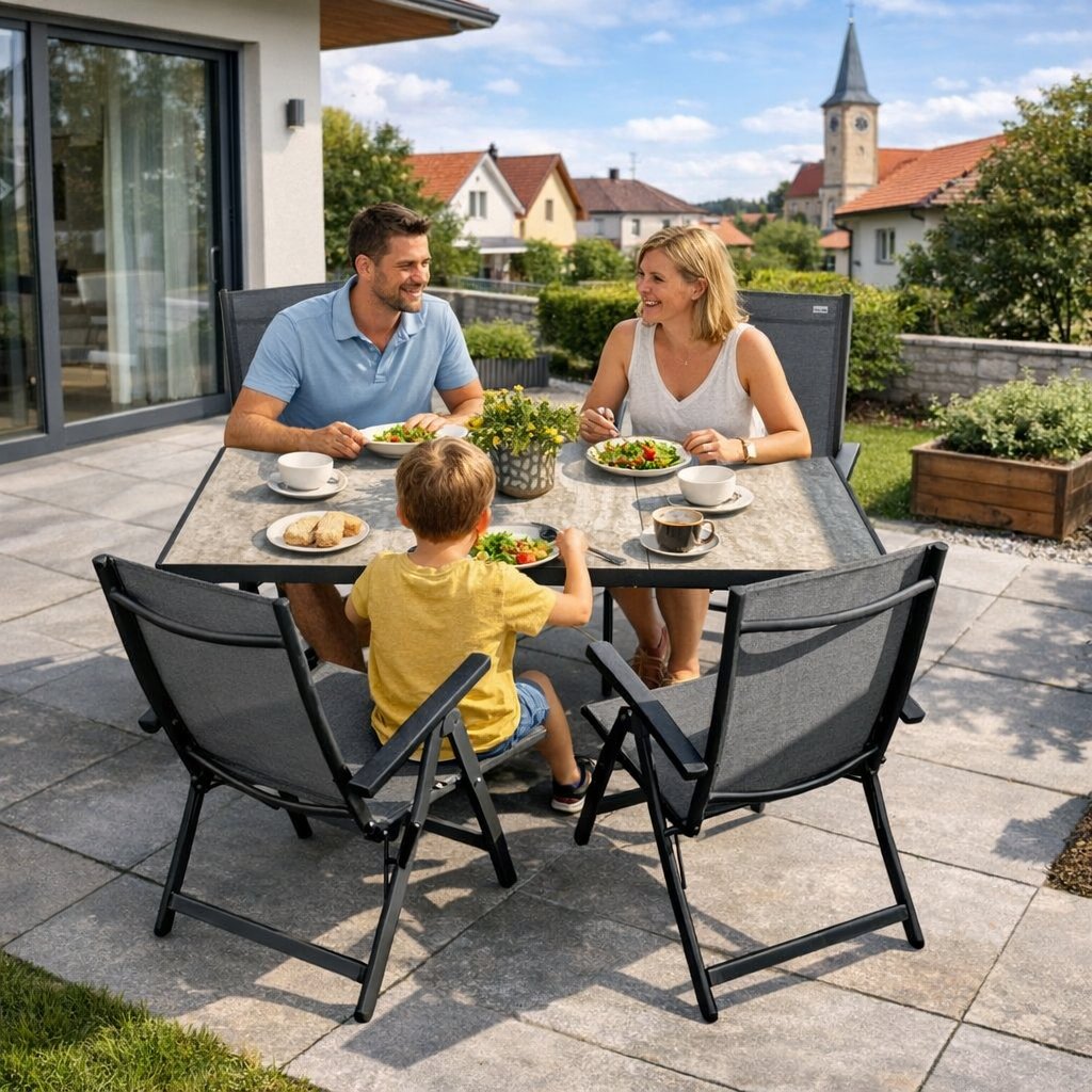 - 4 regulowane krzesła o solidnej aluminiowej konstrukcji