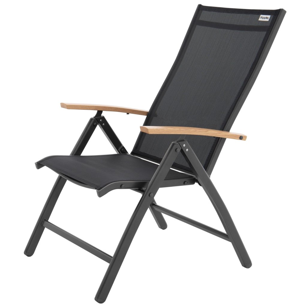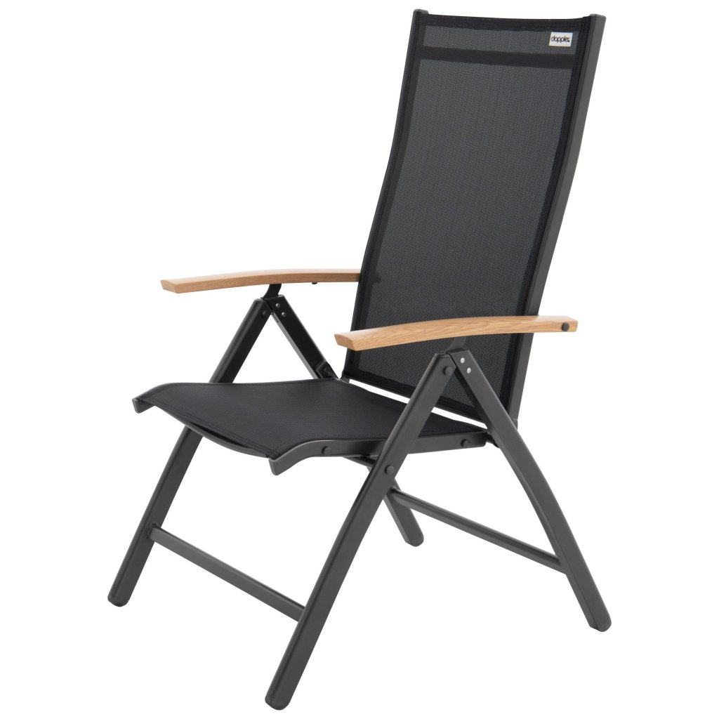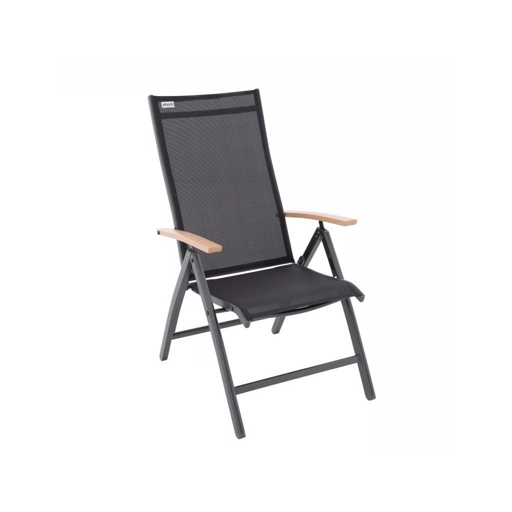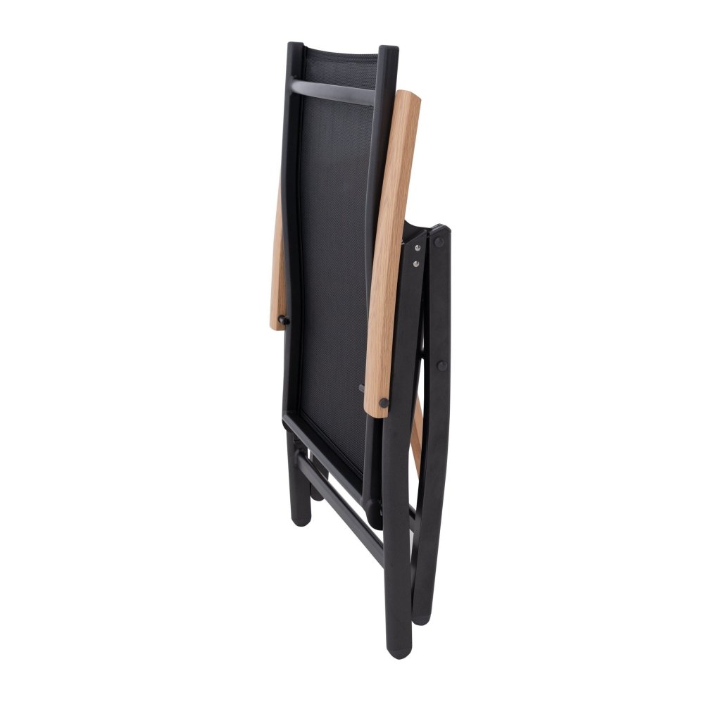 Krzesła wykonane są z lekkiego i bezobsługowego aluminium. Aluminiowe są również podłokietniki z powłoką w dekorze jesionowego drewna, która nadaje krzesłom świeży, naturalny wygląd. Ergonomiczne kształtowanie siedziska i 7-stopniowy system regulacji oparcia zapewnią Państwu maksymalny komfort. Fotele można łatwo składać i rozkładać.
