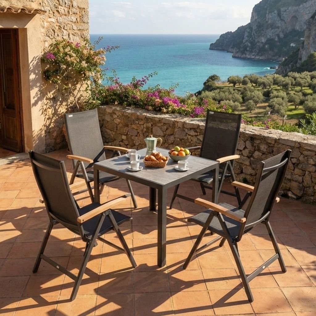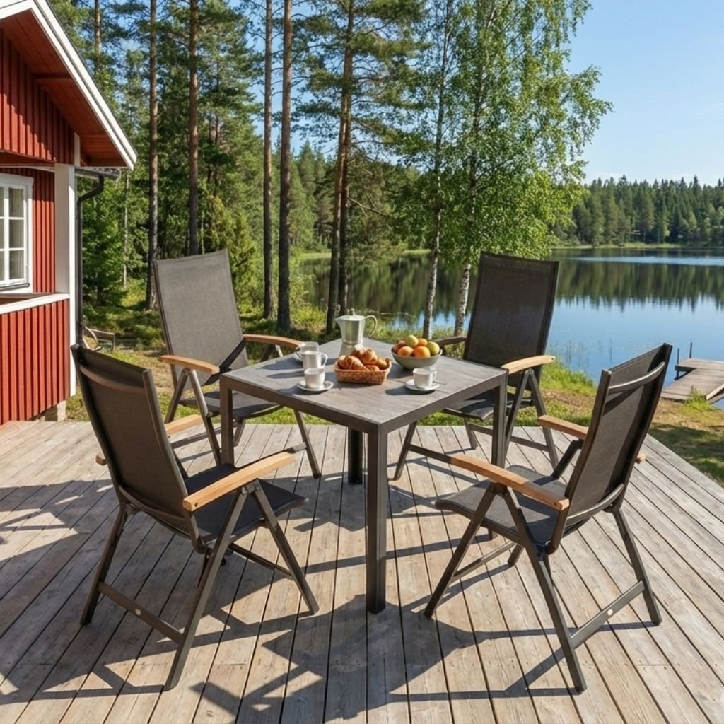BERGAMO EXPERT WOOD - aluminiowy zestaw wypoczynkowy 4+1