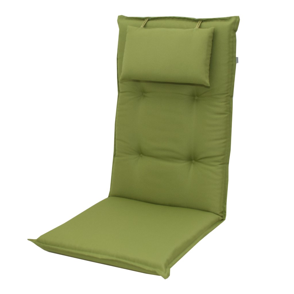 Poduszka z wysokim oparciem na meble ogrodowe z serii BRILLANT jest wykonana z obszytym brzegiem, pikowana 4x kółkami w oparciu. Poduszka jest dodatkowo wyposażona w praktyczny podgłówek dla jeszcze wyższej jakości odpoczynku. Mocowanie odbywa się za pomocą przesuwnego klipsa. Dzięki klipsowi można dopasować rozmiar do wymiarów i rodzaju krzesła, klips jest mocny i się nie rozciąga. Mocowanie siedziska odbywa się za pomocą dwóch sznurków w zgięciu poduszki. Pokrowiec jest nieściągalny.