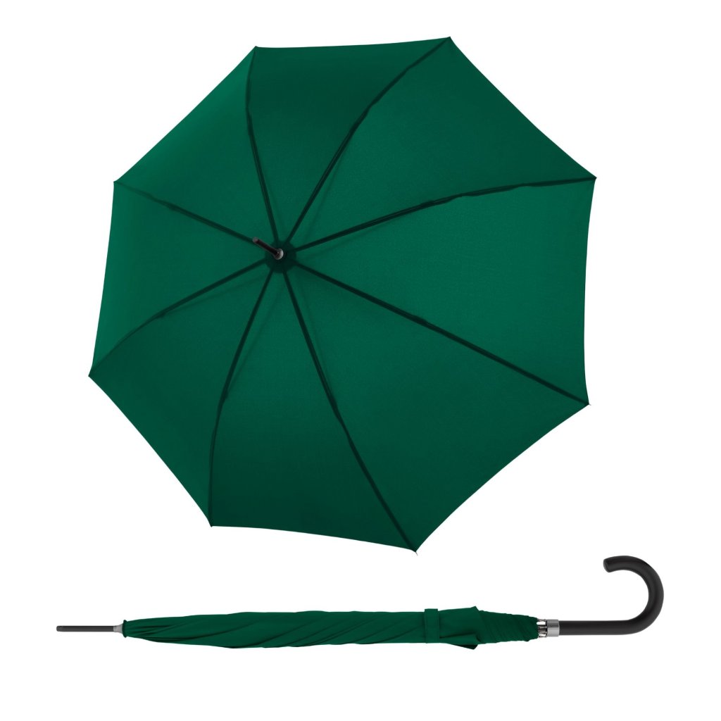 Automatyczny parasol typu "kij" z jednokolorowym wzorem. Ma bardzo szeroki dach, dzięki czemu dwie osoby mogą schronić się pod nim przed deszczem. Plastowy uchwyt świetnie leży w dłoni i jest dodatkowo dopasowany kolorystycznie do reszty parasola. Pozostała część konstrukcji wykonana jest ze stali i włókna szklanego. Ta kombinacja materiałów wraz z wysoką jakością wykonania parasola gwarantuje wysoką wytrzymałość i elastyczność, dzięki czemu nie ulegnie uszkodzeniu, nawet jeśli zostanie przewrócony przez wiatr. Pokrowiec wykonany jest z szybkoschnącego poliestru, który jest odporny na zmiany wilgotności i temperatury, nie kurczy się.