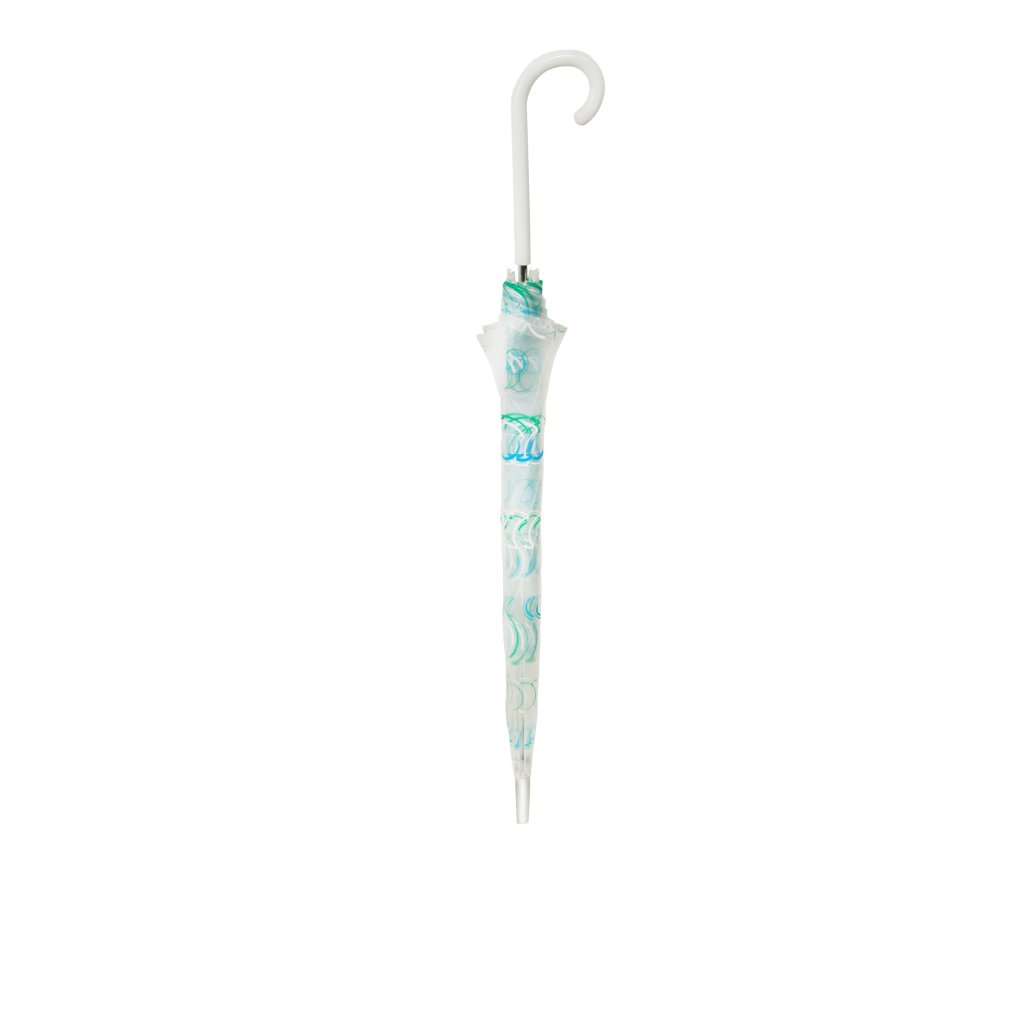 Damski przezroczysty parasol-laska przyjemny w dotyku. Stabilny dzięki konstrukcji z włókna szklanego i stali. Odwrócenie parasola nie spowoduje jego uszkodzenia. Duża, przezroczysta czasza z nadrukiem.
