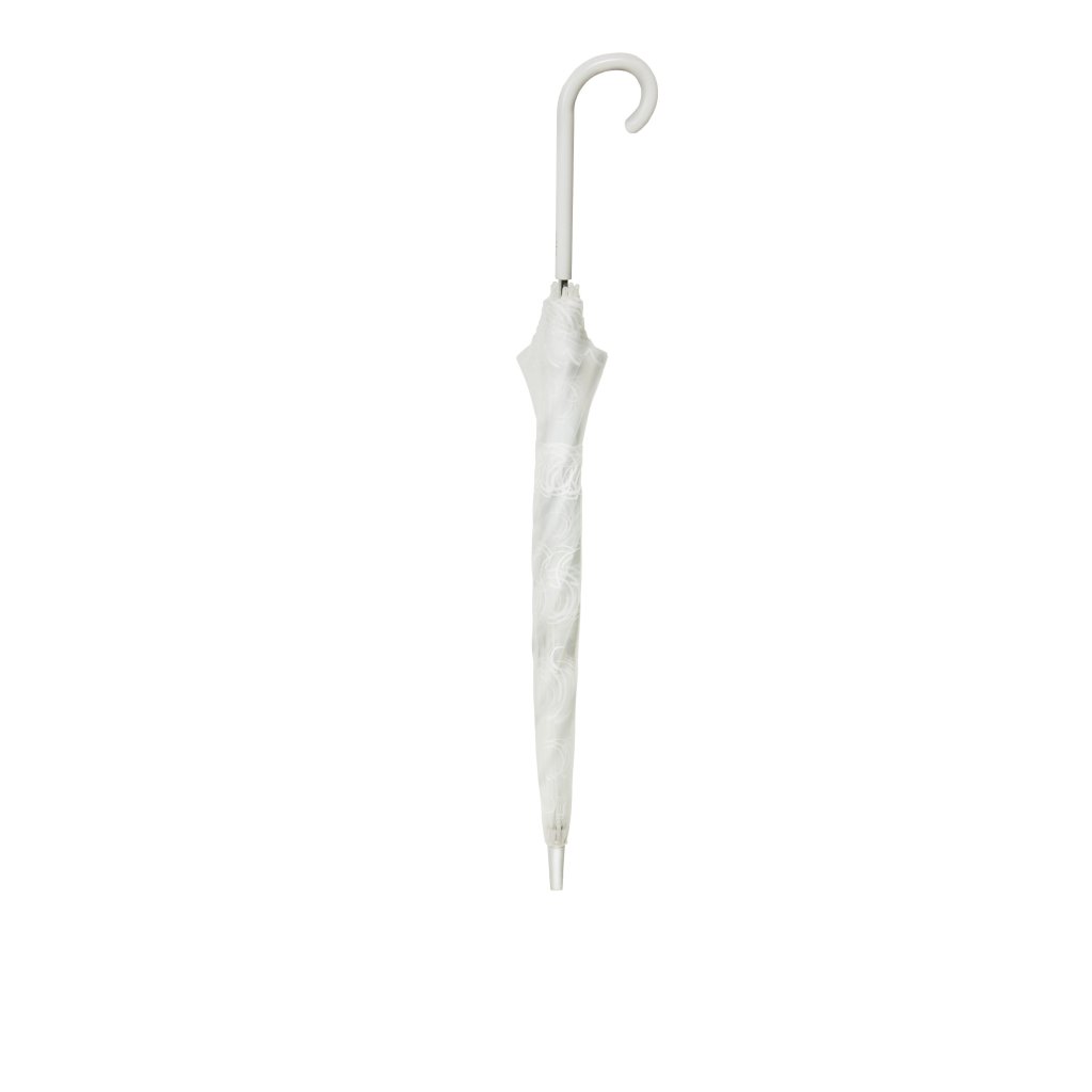 Damski przezroczysty parasol-laska przyjemny w dotyku. Stabilny dzięki konstrukcji z włókna szklanego i stali. Odwrócenie parasola nie spowoduje jego uszkodzenia. Duża, przezroczysta czasza z nadrukiem.