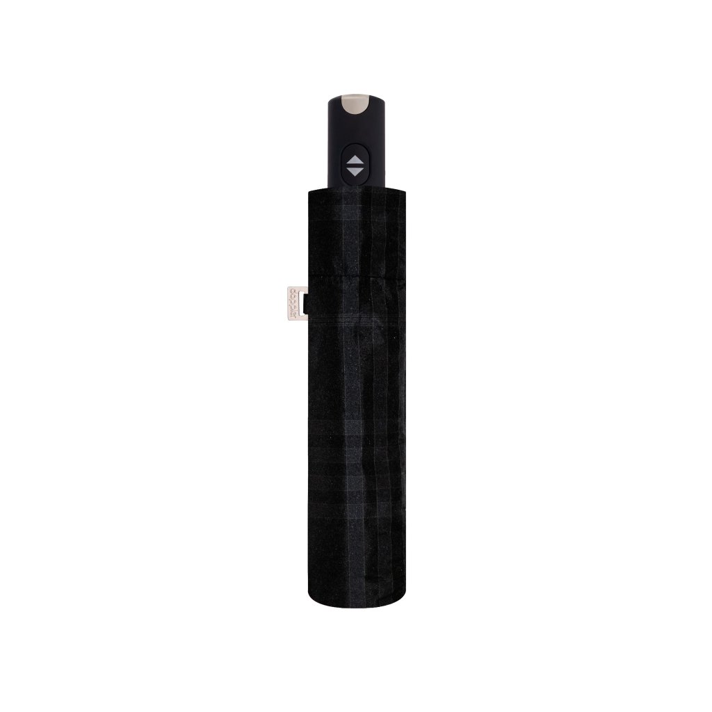 Carbonsteel Magic woven check black grey - męski w pełni automatyczny parasol