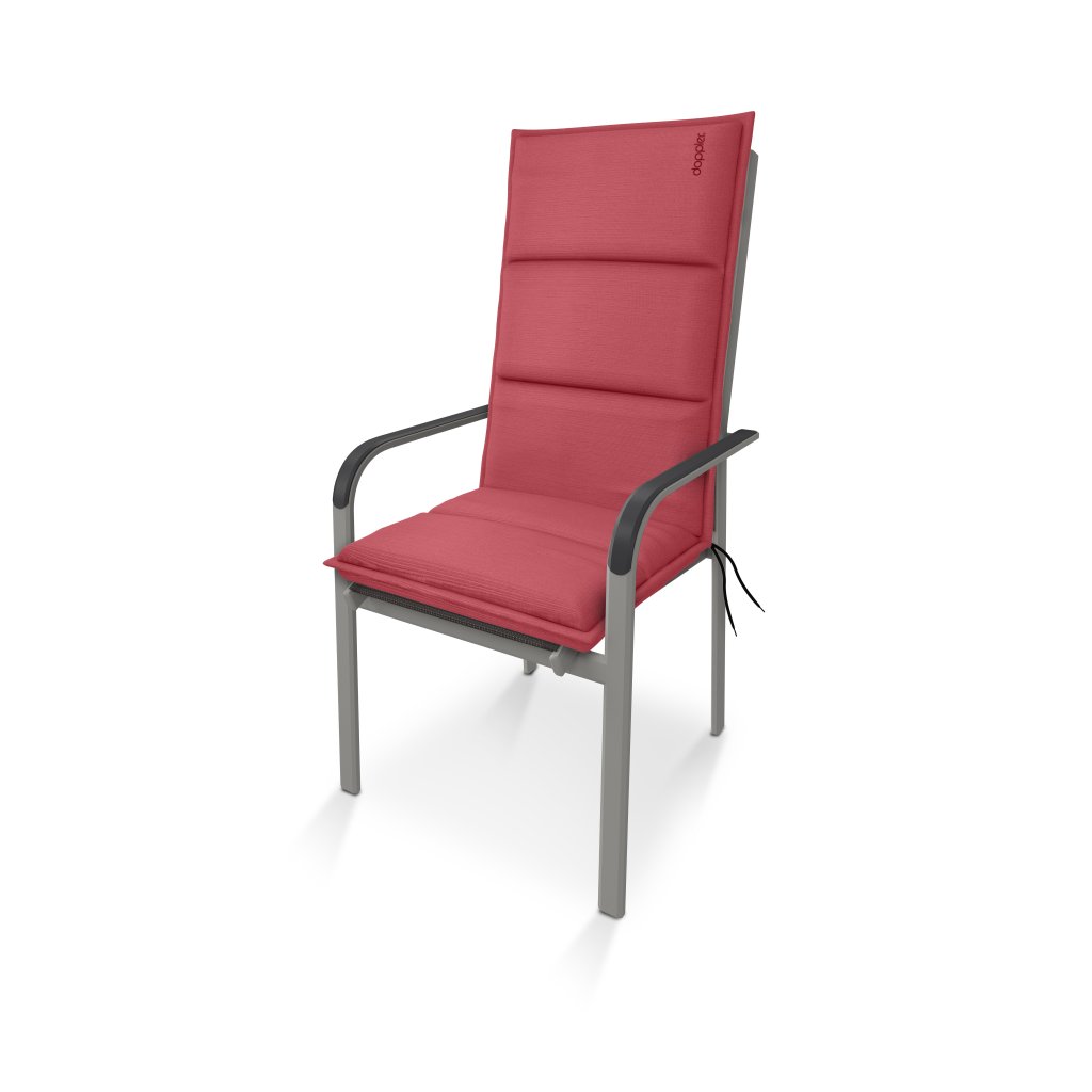 Poduszka z wysokim oparciem z serii CITY. Elegancka poduszka w modnym odcieniu, ozdobiona haftem Doppler na oparciu. Poduszka jest w wykonaniu z obszytym brzegiem, przeszyta 1x na siedzisku, 2x na oparciu. Mocowanie odbywa się za pomocą przesuwnego klipsa. Dzięki klipsowi można ustawić rozmiar według wymiarów i rodzaju krzesła, klips jest mocny i się nie rozciąga. Mocowanie siedziska odbywa się za pomocą dwóch sznurków w zgięciu poduszki. Grubość poduszki jest optymalna dla wszystkich rodzajów krzeseł. Wykonanie nadaje się również do trudnych warunków kawiarni, ogródków i restauracji. Pokrowiec jest nieusuwalny.