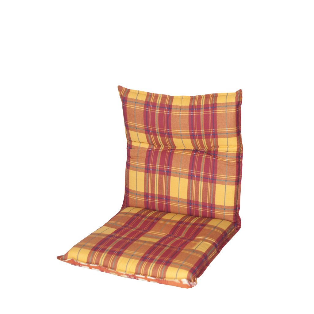Poduszka z niskim oparciem do mebli ogrodowych z serii CLASSIC jest wykonana z ozdobnym obszyciem na krawędzi ok. 1 cm. Mocowanie odbywa się za pomocą przesuwnego klipsa. Dzięki klipsowi można dopasować rozmiar do wymiarów i rodzaju krzesła, klips jest mocny i się nie rozciąga. Mocowanie siedziska do mebli ogrodowych odbywa się za pomocą dwóch sznurków w zgięciu poduszki. Dużą zaletą poduszki jest dwustronny wzór - połączenie pasków i kraty. Pokrowiec jest nieściągalny.