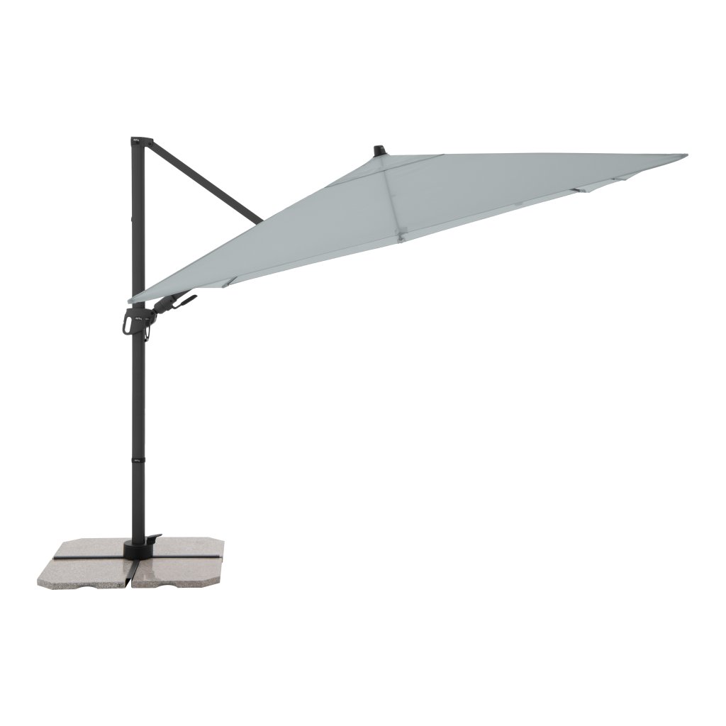 | Cechy i funkcje: | Odporny na warunki atmosferyczne, Obrót wokół osi, Pochylanie, Zdejmowany/ręcznie zmywalny pokrowiec na parasol, Automatyczne otwieranie za pomocą klamki |