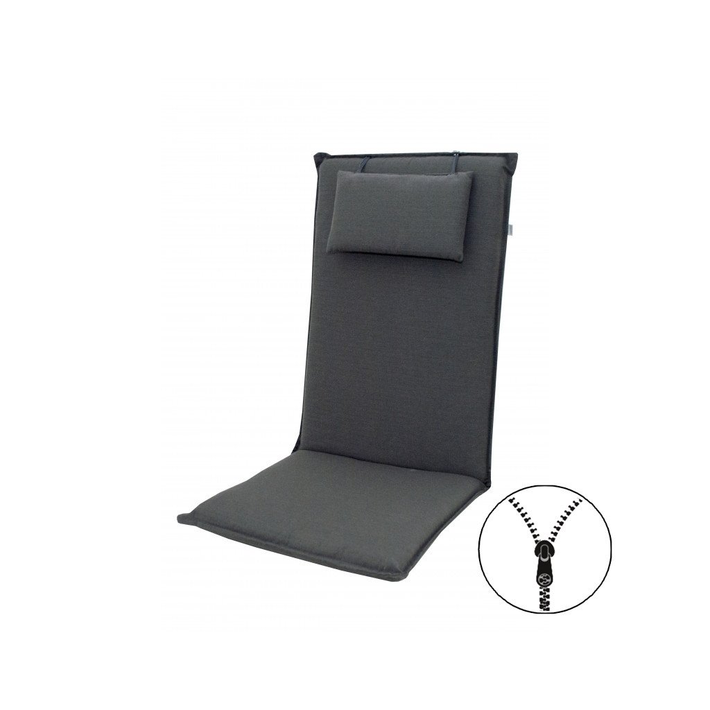 Poduszka z wysokim oparciem na meble ogrodowe z serii ELEGANT jest w wykonaniu z obszytym brzegiem. Mocowanie odbywa się za pomocą przesuwnego zatrzasku. Dzięki zatrzaskowi można ustawić rozmiar według wymiaru i rodzaju krzesła, zatrzask jest mocny i się nie rozciąga. Mocowanie siedziska odbywa się za pomocą dwóch sznurówek w zgięciu poduszki. Grubość poduszki jest optymalna dla wszystkich rodzajów krzeseł. Wykonanie nadaje się również do trudnych warunków kawiarni, ogródków i restauracji. Poduszka jest w wykonaniu z zamkiem błyskawicznym, pokrowiec jest zdejmowany i można go prać.