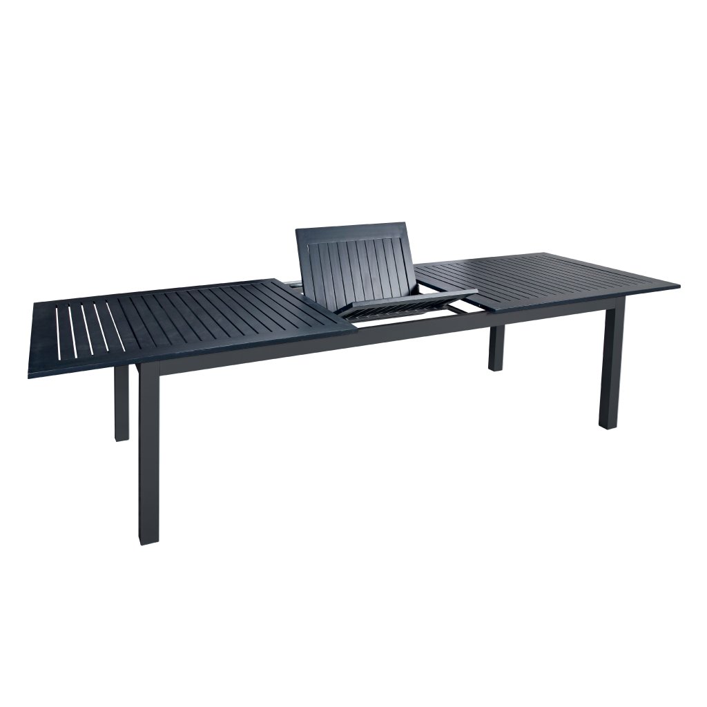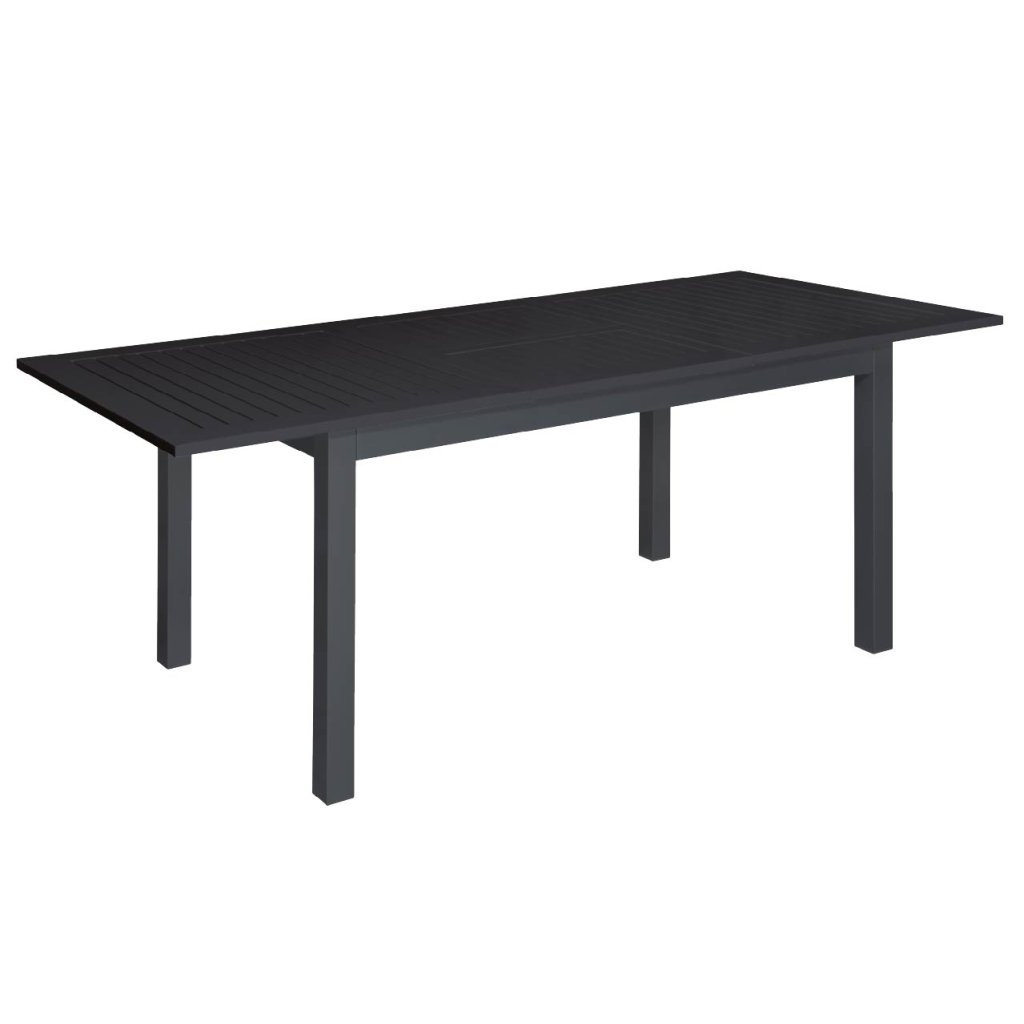Rozkładany aluminiowy stół ogrodowy EXPERT to nowoczesne, ponadczasowe meble ogrodowe. Czarny kolor i proste, czyste linie pasują do każdego otoczenia. Cały stół wykonany jest z wysokiej jakości stopu aluminium pokrytego czarną farbą proszkową. Żebrowana płyta stołu jest również w kolorze czarnym.