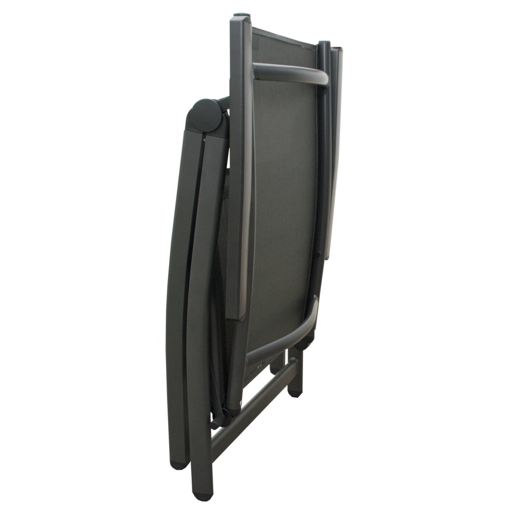 Zestaw zawiera 6 foteli o solidnej aluminiowej konstrukcji z plecionką w kolorze srebrnej kraty. Każde krzesło posiada 7-stopniowy system regulacji oparcia. Dzięki prostej konstrukcji krzesło można łatwo rozłożyć i złożyć. Podczas przechowywania złożone krzesła zajmą minimalną powierzchnię magazynową.