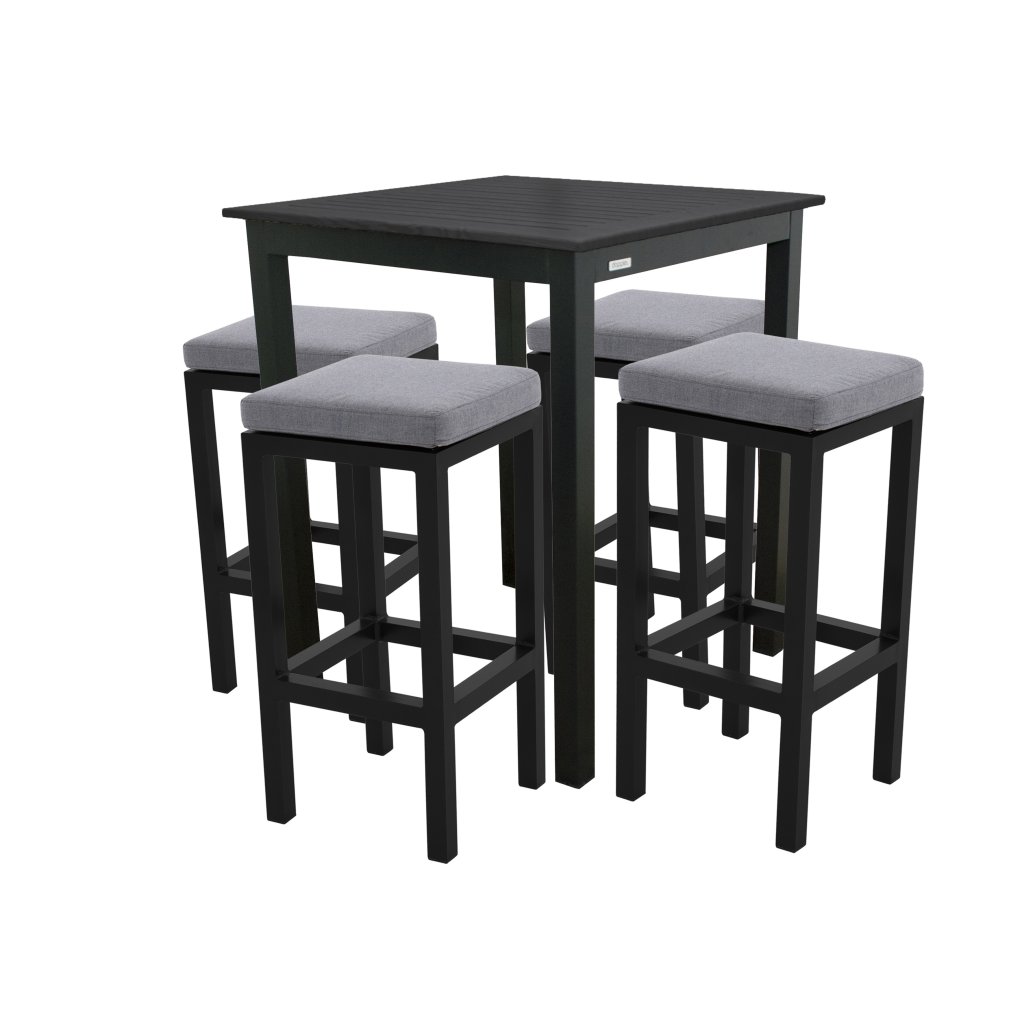 Stół ma stabilną, w pełni aluminiową konstrukcję w kolorze antracytowym, żebrowany aluminiowy blat w kolorze antracytowym. Wysokość stołu wynosi 110 cm. Dzięki zastosowanym materiałom stół jest lekki, łatwy w utrzymaniu i odporny na warunki atmosferyczne. Staje się meblem ogrodowym o długiej żywotności.