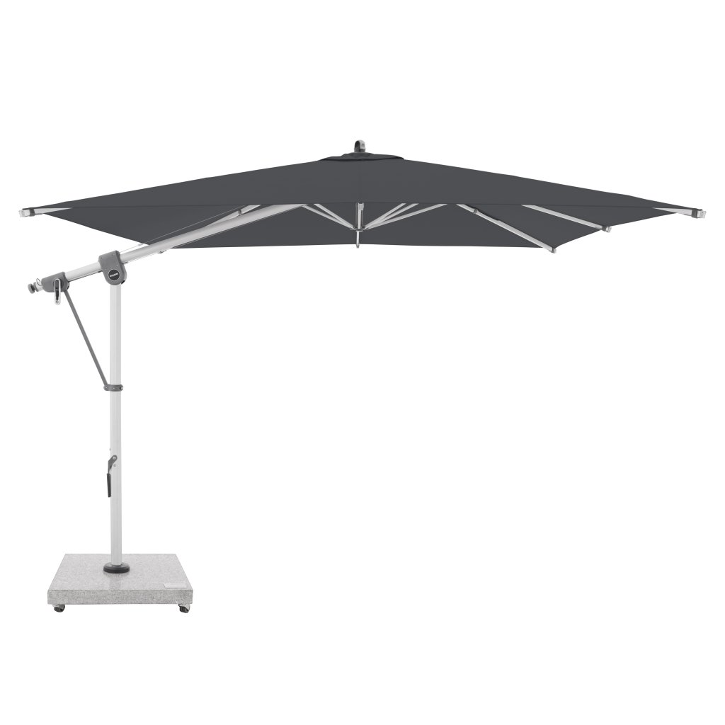 Ten wielofunkcyjny parasol można optymalnie dopasować do pozycji słońca dzięki możliwości obrotu o 360° i obustronnemu bocznemu odchylaniu dachu. Konstrukcja wykonana jest z wysokiej jakości aluminium, a wszystkie części są skręcane. Parasol posiada nowo opracowany zębaty pasek napędowy, który zapewnia długotrwałą i bezproblemową pracę podczas otwierania i zamykania parasola.