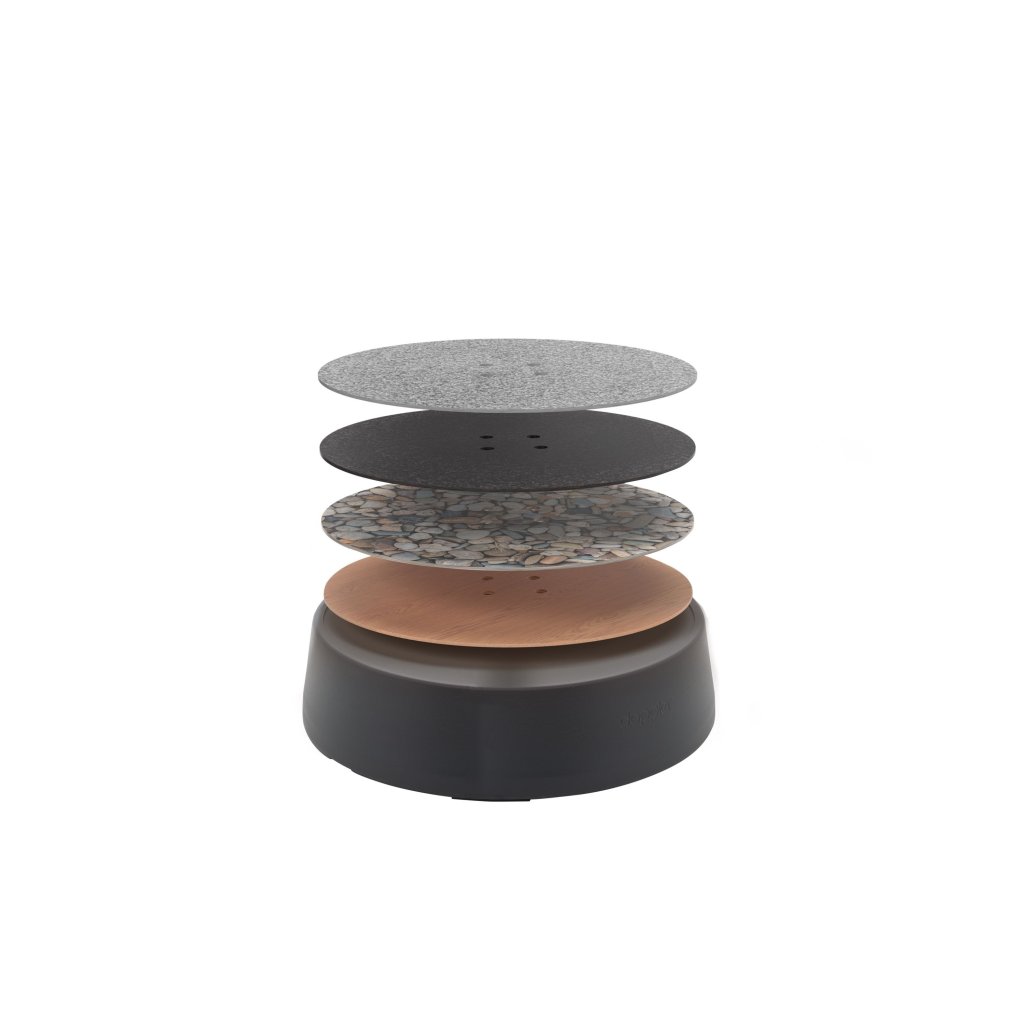Dodatkowo możesz ten stojak na parasol dopasować do swojego gustu i designu. Możesz dokupić piękne osłony w czterech dekorach – drewno, ciemny lub szary granit i kamienne otoczaki. Stojak z pewnością doskonale wpasuje się w wygląd Twojego ogrodu.