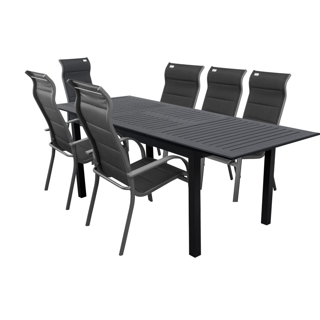 Nowoczesny aluminiowy zestaw EXPERT MIAMI 6+1 jest idealny dla każdego, kto chce przekształcić swój ogród lub taras w strefę wypoczynku i relaksu. Zestaw zawiera 6 ergonomicznie wyprofilowanych krzeseł, które zapewnią ulgę Twoim plecom. Dzięki wypełnieniu krzesła są bardzo wygodne i jednocześnie łatwe w utrzymaniu czystości. Ich lekka aluminiowa konstrukcja ułatwi przenoszenie, a dzięki możliwości sztaplowania można je łatwo przechowywać.