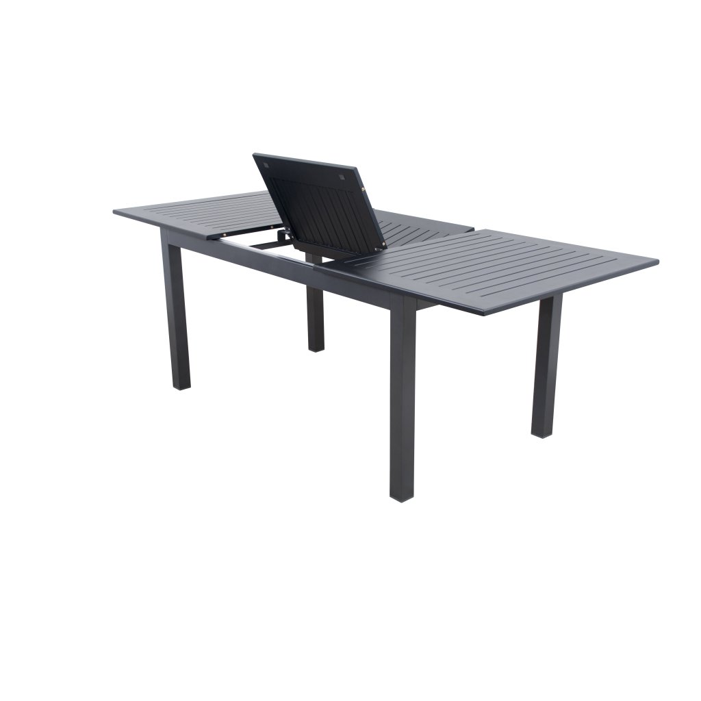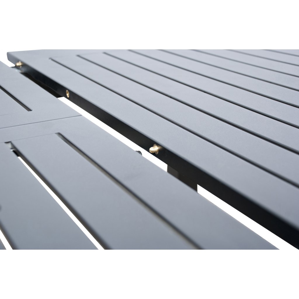 Częścią zestawu jest rozkładany stół EXPERT o wymiarach 220/280x100 cm. Stół wykonany jest z wytrzymałej aluminiowej konstrukcji i posiada żebrowany aluminiowy blat z czarną powłoką proszkową.