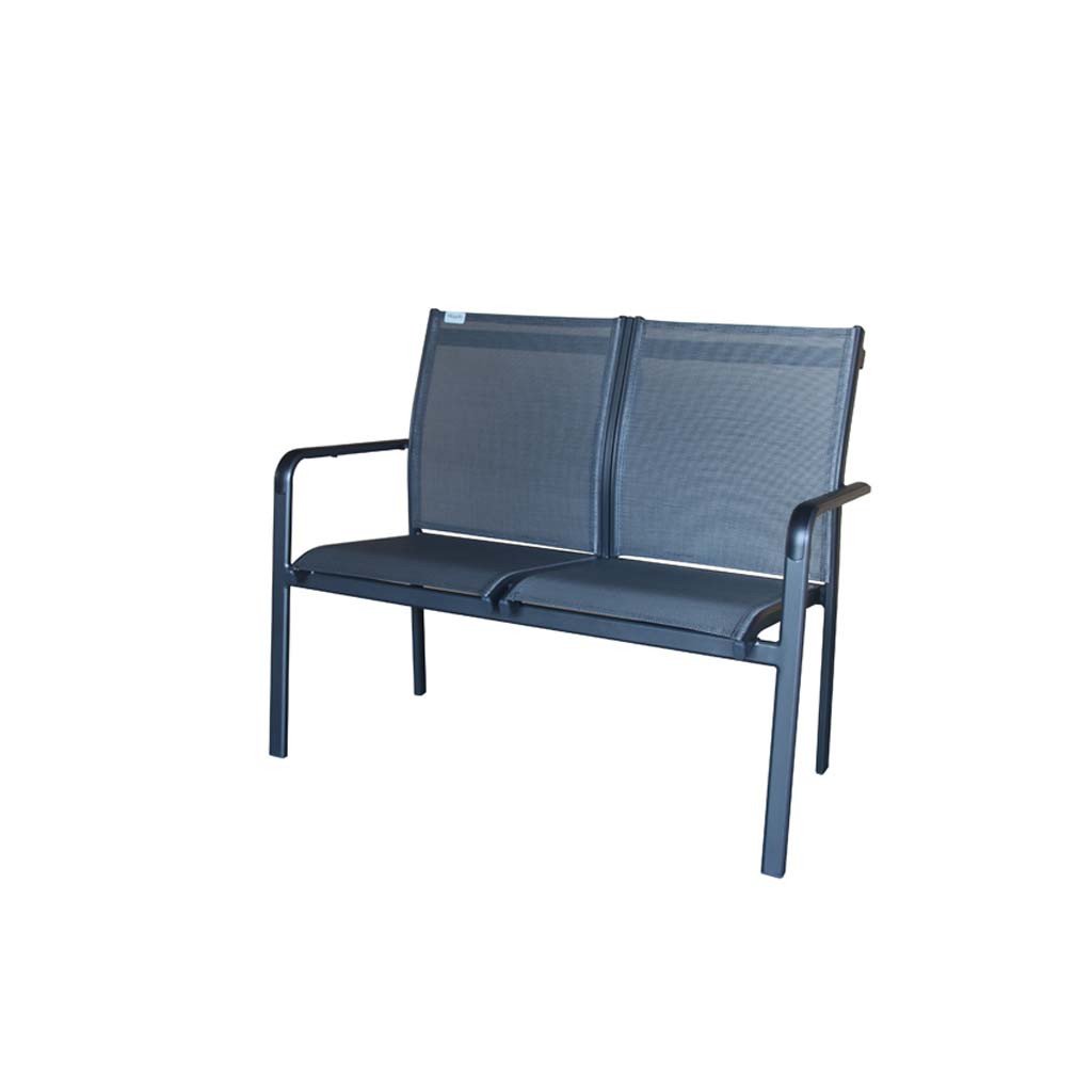 Ławka ogrodowa EXPERT PLUS doda uroku Twojemu domowi, ogrodowi lub tarasowi. Ławka oferuje wystarczająco dużo miejsca dla dwóch osób do odpoczynku na świeżym powietrzu, spotkań z przyjaciółmi lub relaksu z kawą czy książką. Posiada lekką, ale wytrzymałą aluminiową konstrukcję z wykończeniem w kolorze antracytowym. Taki sam kolor ma również plecionka z tworzywa sztucznego. Połączenie tych bezobsługowych materiałów sprawia, że ławka jest odporna na niekorzystne warunki atmosferyczne, przedłużając tym samym jej żywotność.