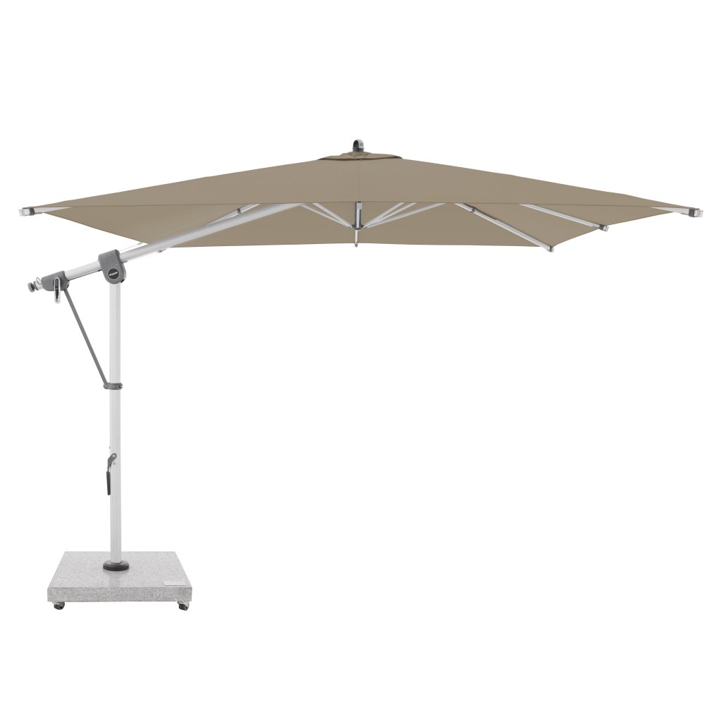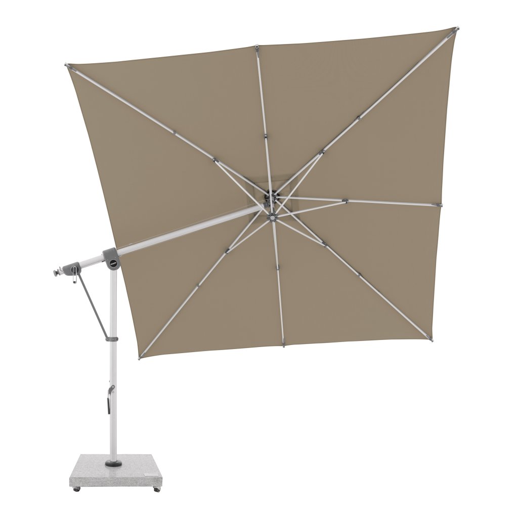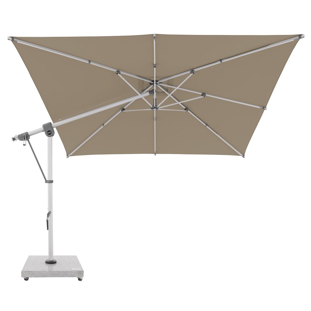 Ten wielofunkcyjny parasol można optymalnie dopasować do pozycji słońca dzięki możliwości obrotu o 360° i obustronnemu bocznemu odchylaniu dachu. Konstrukcja wykonana jest z wysokiej jakości aluminium, a wszystkie części są skręcane. Parasol posiada nowo opracowany zębaty pasek napędowy, który zapewnia długotrwałą i bezproblemową pracę podczas otwierania i zamykania parasola.