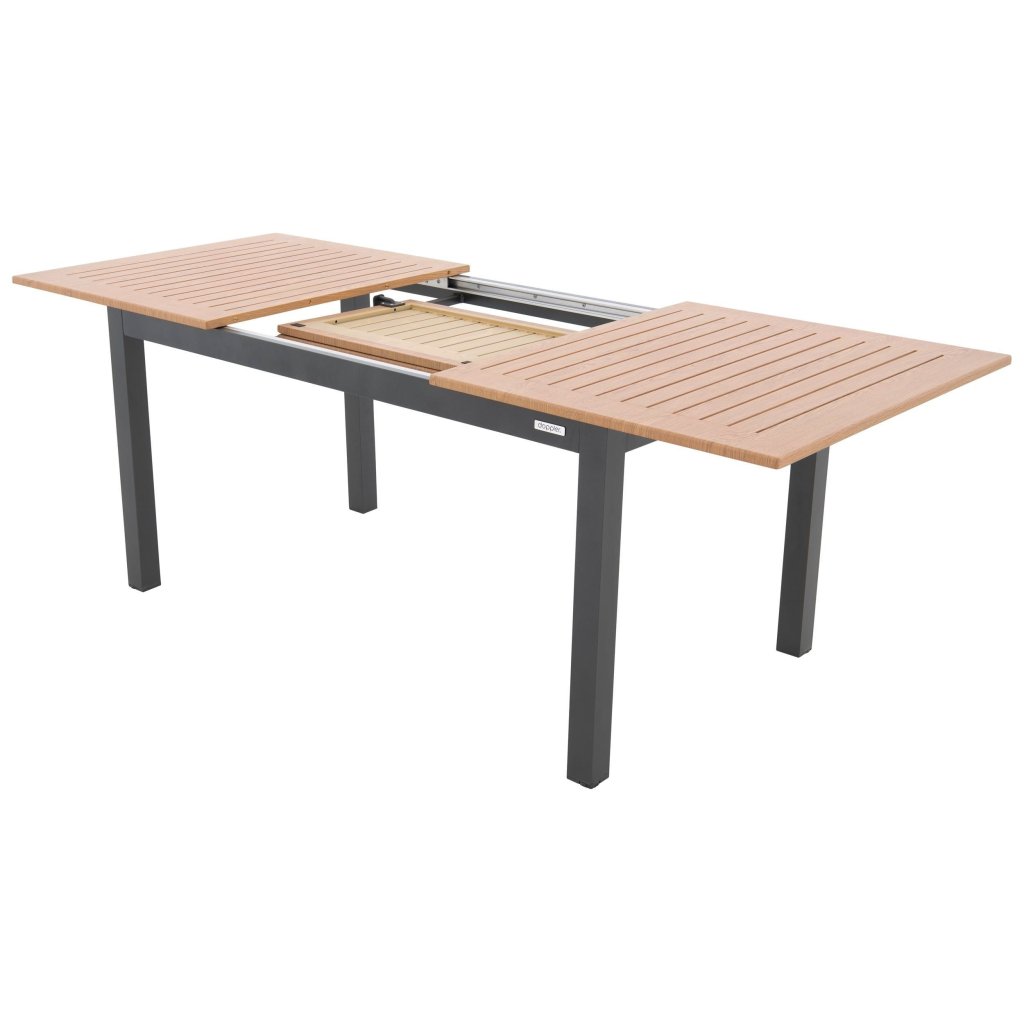 Elegancki i praktyczny stół EXPERT WOOD antracyt stanowi doskonałe rozwiązanie dla wszystkich, którzy szukają kompromisu między funkcjonalnością aluminium a estetyką drewna.