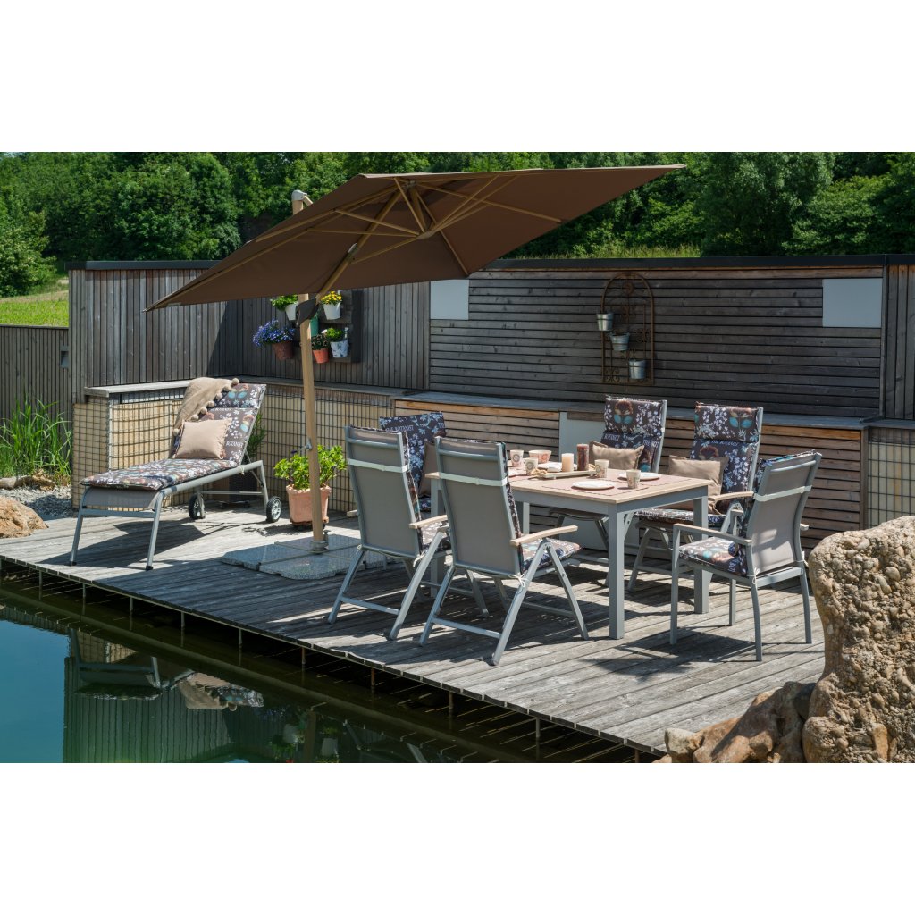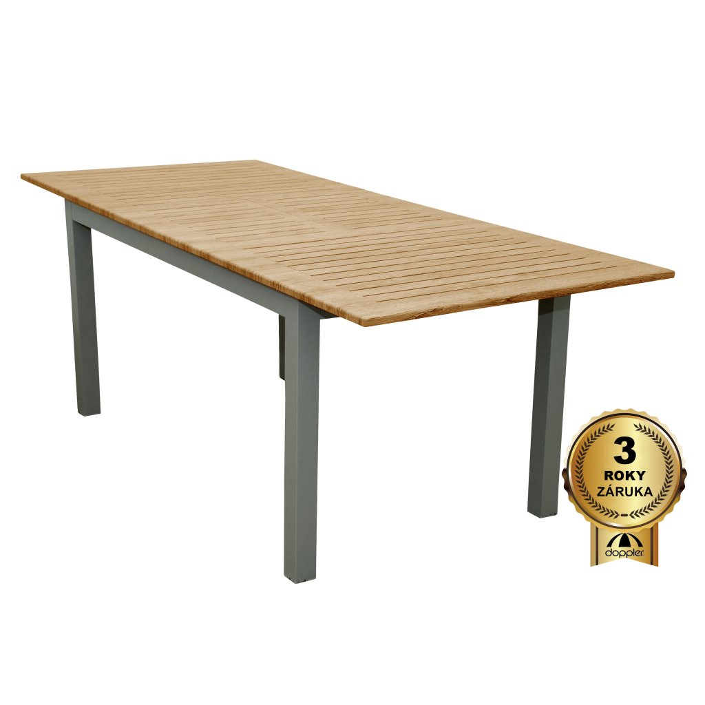 Rozkładany stół EXPERT WOOD posiada wytrzymałą aluminiową konstrukcję w kolorze jasnoszarym. Ryflowany blat stołu aluminiowego posiada powłokę proszkową w dekorze drewna. Stół dzięki swojej lekkości, łatwości konserwacji i odporności na warunki atmosferyczne jest doskonałym dodatkiem meblowym do Twojego ogrodu lub tarasu. Dzięki zastosowanym materiałom stół jest meblem ogrodowym o długiej żywotności.