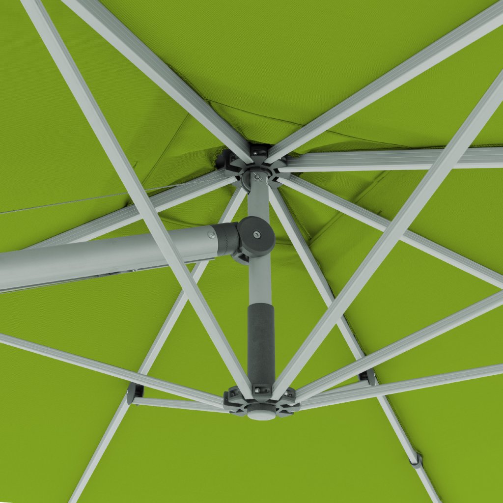 Ten wielofunkcyjny parasol można optymalnie dopasować do pozycji słońca dzięki możliwości obrotu o 360° i obustronnemu bocznemu odchylaniu dachu. Konstrukcja wykonana jest z wysokiej jakości aluminium, a wszystkie części są skręcane. Parasol posiada nowo opracowany zębaty pasek napędowy, który zapewnia długotrwałą i bezproblemową pracę podczas otwierania i zamykania parasola.