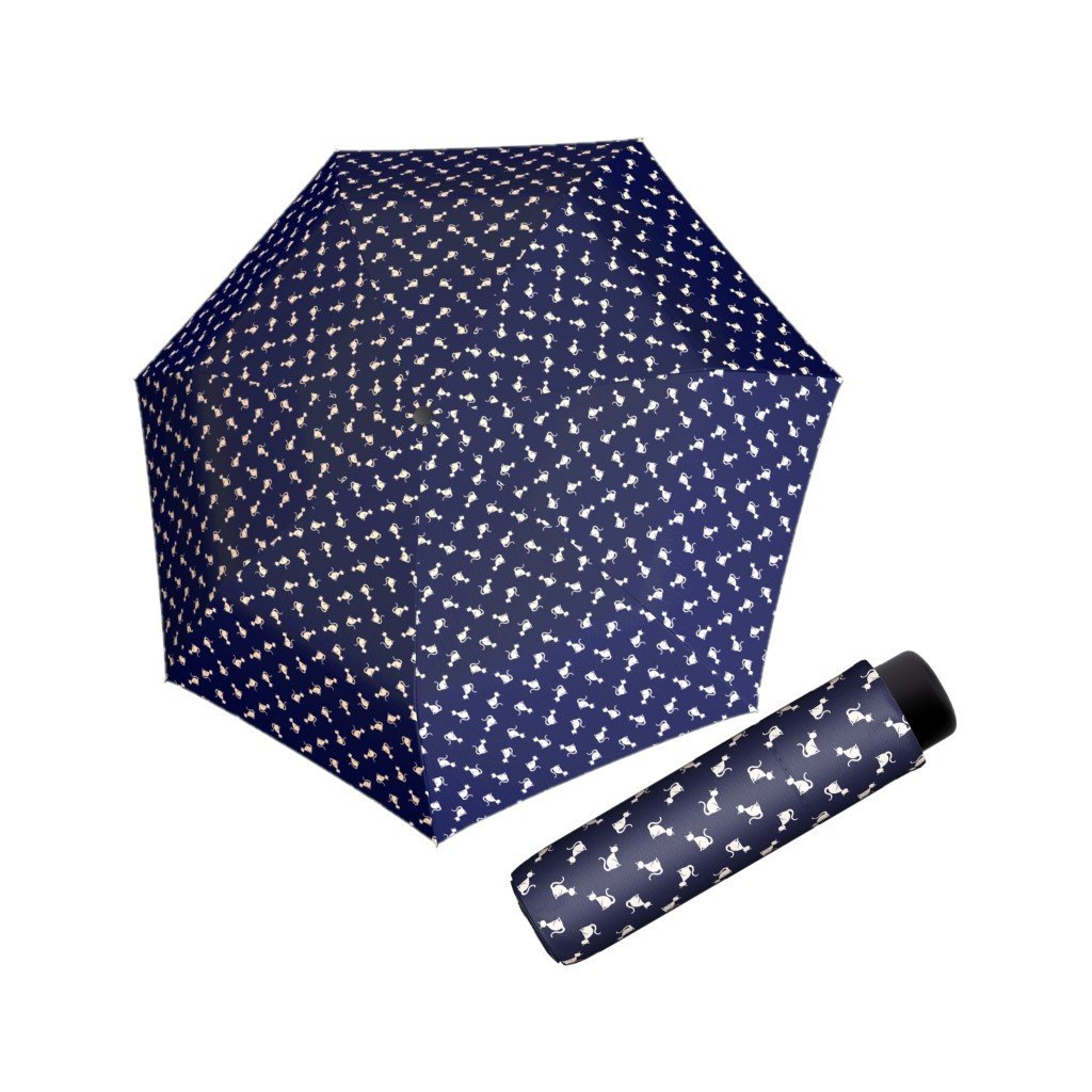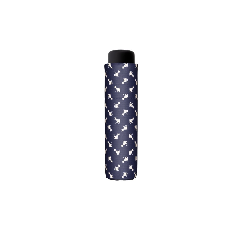 Fiber Fun Kitty Cat to praktyczny damski/dziecięcy składany parasol z nadrukiem kotków. Ponieważ po złożeniu ma zaledwie 18 cm długości, doskonale nadaje się do codziennego noszenia w torebce lub jako towarzysz podróży. Konstrukcja wykonana jest z włókna szklanego, aluminium i stali, co nadaje jej elastyczność, wytrzymałość i dobrą odporność na warunki atmosferyczne. Pokrycie wykonane jest z wysokiej jakości tkaniny pongee. Jest przyjemny w dotyku, bardzo cienki i odporny na zmiany temperatury i wilgotności.