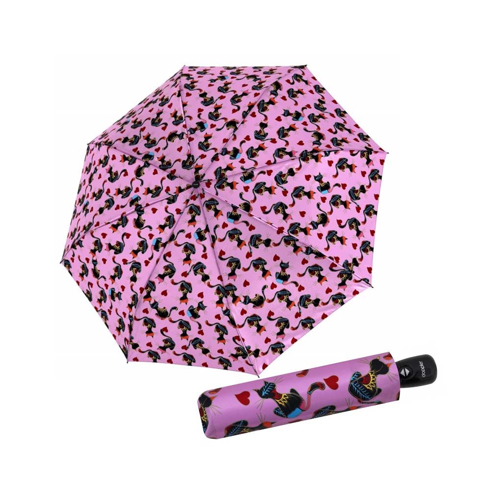 Wysokiej jakości i elegancki, w pełni automatyczny damski parasol z magicznego włókna dla miłośniczek kotów, z nowoczesnym nadrukiem kotów. Konstrukcja parasola wykonana jest z połączenia stali / włókna szklanego i gwarantuje wytrzymałość i stabilność. Odporny na korozję. Odwrócenie parasola nie spowoduje jego uszkodzenia. Pokrowiec z satyny poliestrowej jest odporny na zmiany wilgotności, temperatury i nie kurczy się.