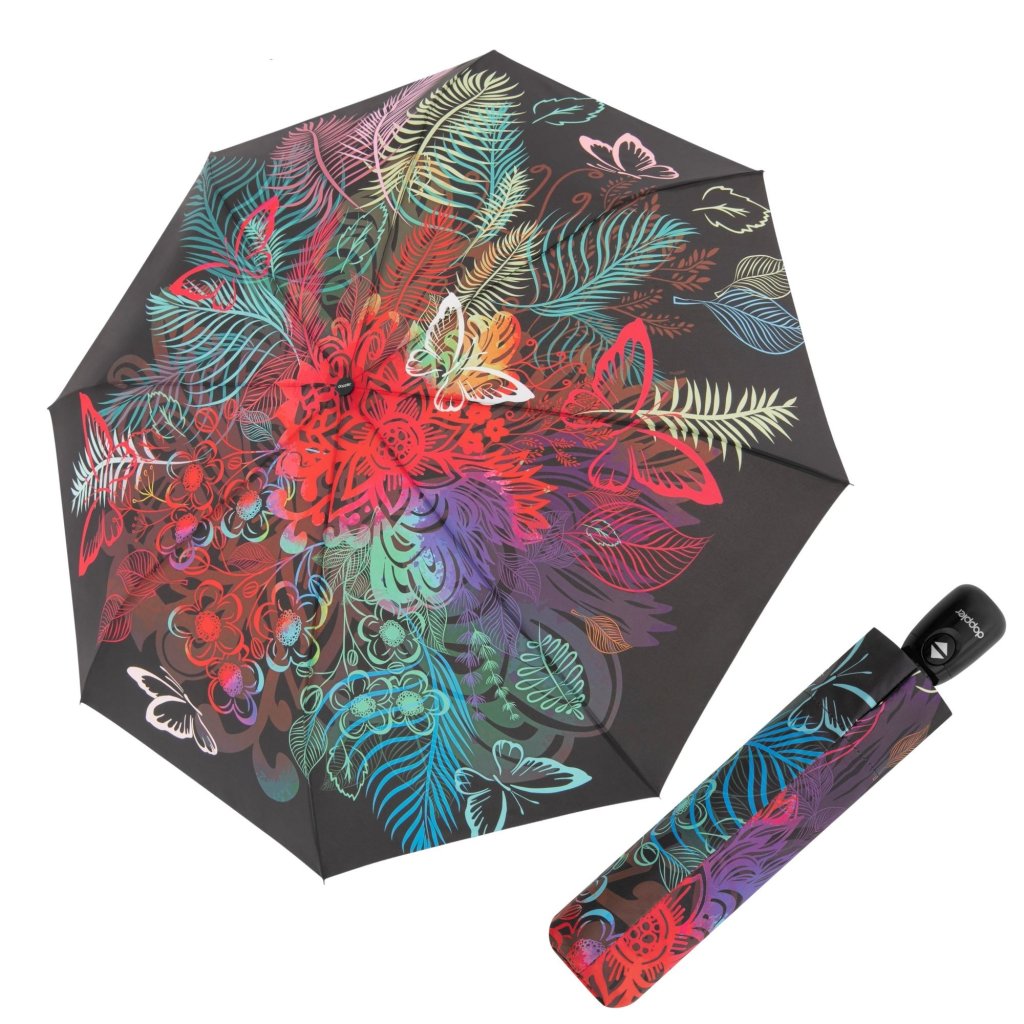 Wysokiej jakości i elegancki damski w pełni automatyczny parasol z motywem kwiatowym. Bardzo wysokiej jakości, wyrazisty nadruk. Konstrukcja parasola wykonana jest z połączenia stali / włókna szklanego i gwarantuje wytrzymałość i stabilność.
