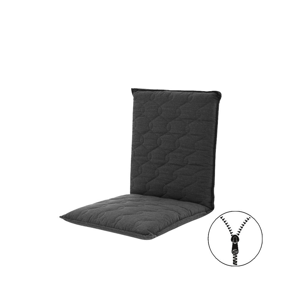 Poduszka z niskim oparciem do mebli ogrodowych z serii FUSION jest w wersji z obszytym brzegiem. Ekskluzywny wzór - przeszycie całej powierzchni poduszki. Mocowanie odbywa się za pomocą przesuwnego klipsa. Dzięki klipsowi można dopasować rozmiar do wymiarów i rodzaju krzesła, klips jest mocny i się nie rozciąga. Mocowanie siedziska odbywa się za pomocą dwóch sznurków w zgięciu poduszki. Grubość poduszki jest optymalna dla wszystkich rodzajów krzeseł. Wersja nadaje się również do trudnych warunków kawiarni, ogródków i restauracji. Poduszka jest w wersji z zamkiem, pokrowiec jest zdejmowany i można go prać ręcznie.