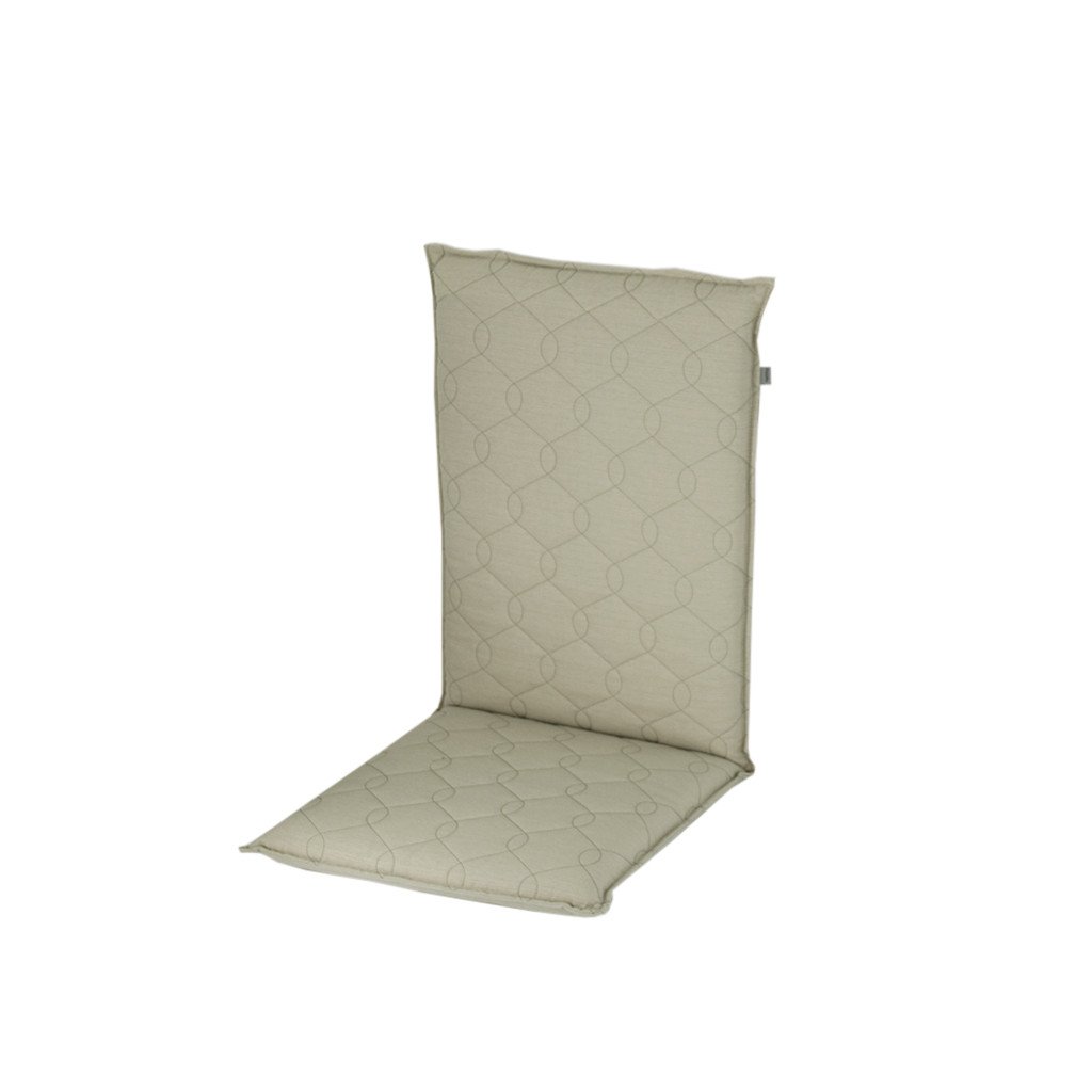 Poduszka z niskim oparciem do mebli ogrodowych z serii FUSION jest w wykonaniu z obszytą lamówką. Ekskluzywny wzór - przeszycie całej powierzchni poduszki. Mocowanie odbywa się za pomocą przesuwnego klipsa. Dzięki klipsowi można dopasować rozmiar do wymiarów i rodzaju krzesła, klips jest mocny i się nie rozciąga. Mocowanie siedziska odbywa się za pomocą dwóch sznurków w zgięciu poduszki. Grubość poduszki jest optymalna dla wszystkich rodzajów krzeseł. Wersja nadaje się również do trudnych warunków kawiarni, ogródków i restauracji. Poduszka jest w wersji z zamkiem błyskawicznym, pokrowiec jest zdejmowany i można go prać ręcznie.