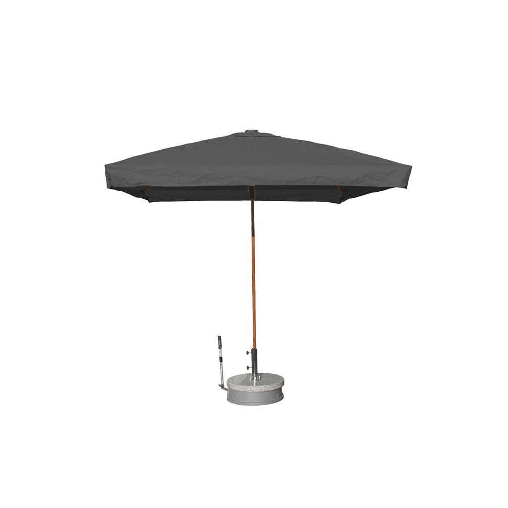Kwadratowy parasol, który jest idealny nawet na mniejsze tarasy. Całość ramy wykonana jest z wytrzymałego aluminium imitującego drewno. Dzięki mechanizmowi Doppler otwierania jedną ręką, otwieranie i zamykanie parasola jest łatwe. Poszycie parasola jest z falbaną, z wentylem, odporne na warunki atmosferyczne, ma wysoką trwałość kolorów stopień 6 i zapewnia również wysoką ochronę UV 80. Pokrowiec jest zdejmowany i można go prać ręcznie.