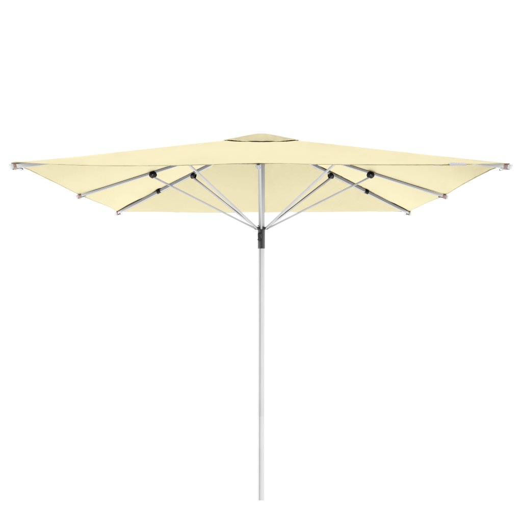 Parasol kwadratowy, który jest idealny nawet na mniejsze tarasy. Cała rama wykonana jest z solidnego aluminium. Dzięki mechanizmowi Doppler do otwierania jedną ręką łatwe jest otwieranie i zamykanie parasola. Pokrowiec parasola jest odporny na warunki atmosferyczne, ma wysoką trwałość koloru stopień 6 i również wysoką ochronę UV 80. Pokrowiec jest zdejmowany i można go prać ręcznie.