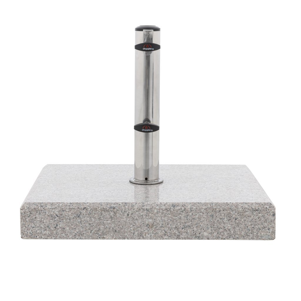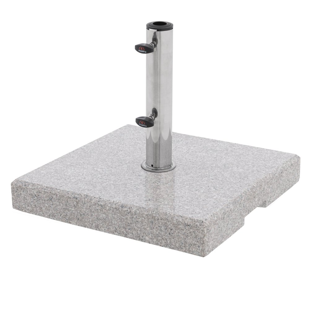 Stojak ten można stosować praktycznie wszędzie, czy to na balkonie, w ogrodzie czy na tarasie. Dzięki swojej wadze podstawa jest odpowiednia do parasoli o średnicy do 180 cm. Parasol jest optymalnie zamocowany w uchwycie ze stali nierdzewnej za pomocą dwóch śrub mocujących. Podstawa wykonana jest z polerowanego granitu. Stojak jest również wyposażony w praktyczny uchwyt wpuszczany. Umożliwia to łatwe podnoszenie i regulację stojaka.