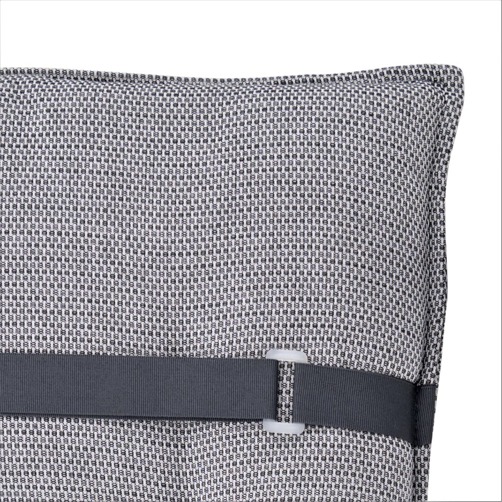 Poduszka na leżak ogrodowy z serii STAR jest wykonana z obszytym brzegiem, 4x pikowana w oparciu. Mocowanie odbywa się za pomocą przesuwnego klipsa. Dzięki klipsowi można dopasować rozmiar do wymiarów i rodzaju krzesła, klips jest mocny i się nie rozciąga. Mocowanie siedziska odbywa się za pomocą dwóch sznurków w zgięciu poduszki. Pokrowiec jest nieściągalny.