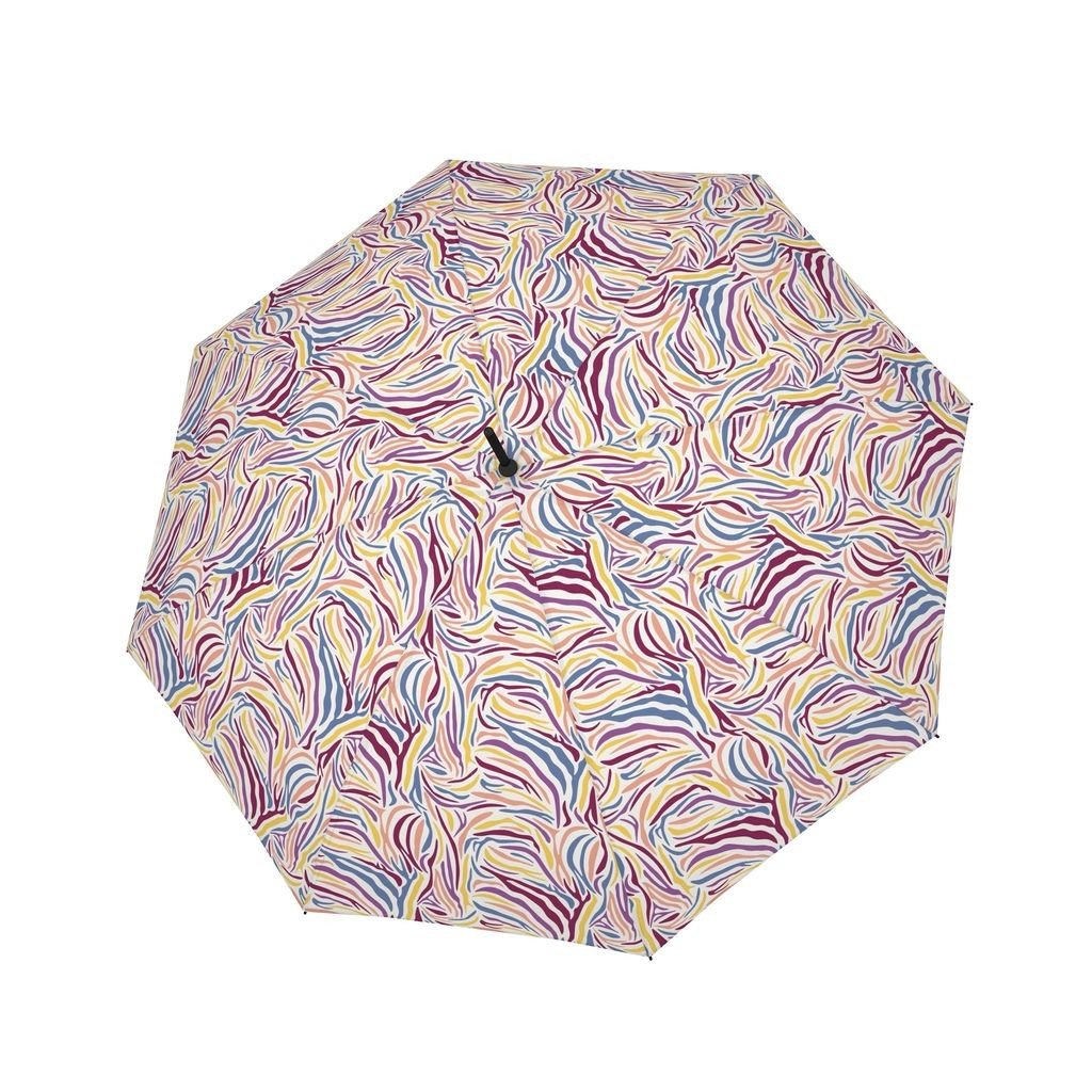 Parasol automatyczny typu laska z unikalnym kolorowym wzorem, który zachwyci wszystkie panie. Ma bardzo szeroki dach, dzięki czemu dwie osoby mogą schronić się pod nim przed deszczem. Plastikowy uchwyt idealnie leży w dłoni. Reszta konstrukcji wykonana jest z czarnej stali. Bardzo wysoka jakość konstrukcji zapewnia większą stabilność parasola. Pokrowiec wykonany jest z szybkoschnącego poliestru, który jest odporny na zmiany wilgotności i temperatury, nie kurczy się.