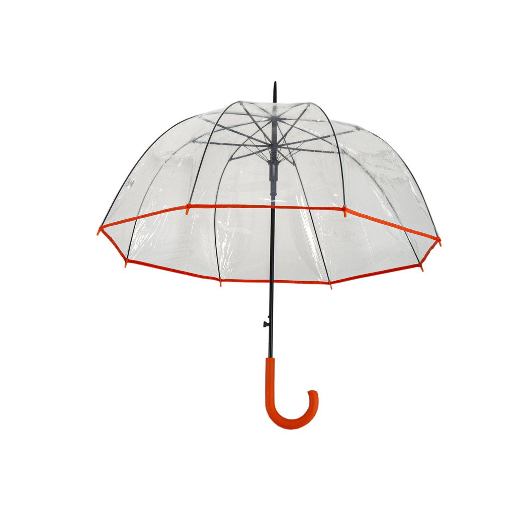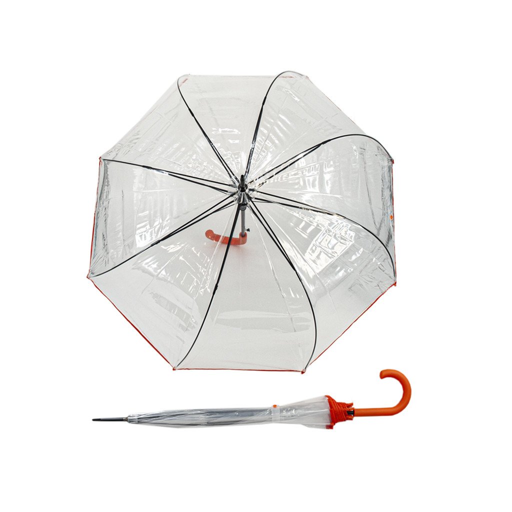Damski parasol automatyczny typu "kij" przezroczysty jest wygodny w dłoni, stabilny, wytrzymały stelaż ze stali. Mocna, wiatroodporna czarna konstrukcja. Duży przezroczysty dach. Solidna, wiatroodporna czarna konstrukcja. Duży, przezroczysty dach. Pomarańczowy ściągacz.