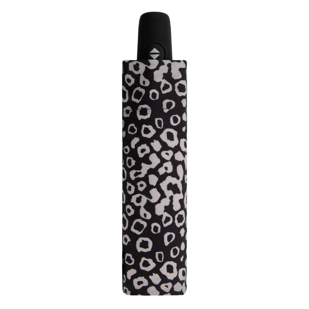 Damski w pełni automatyczny parasol z nowoczesnym wzorem. Można go łatwo i szybko otworzyć i zamknąć jedną ręką za pomocą naciśnięcia przycisku. Dzięki kompaktowym rozmiarom łatwo zmieścisz go do torebki i torby. Posiada czarną konstrukcję wykonaną z połączenia włókna szklanego i stali, która nadaje mu wytrzymałość i stabilność. Po odwróceniu parasola nie dojdzie do jego uszkodzenia. Pokrycie wykonane z cienkiej tkaniny pongee jest przyjemne w dotyku i odporne na zmiany wilgotności i temperatury, nie kurczy się.