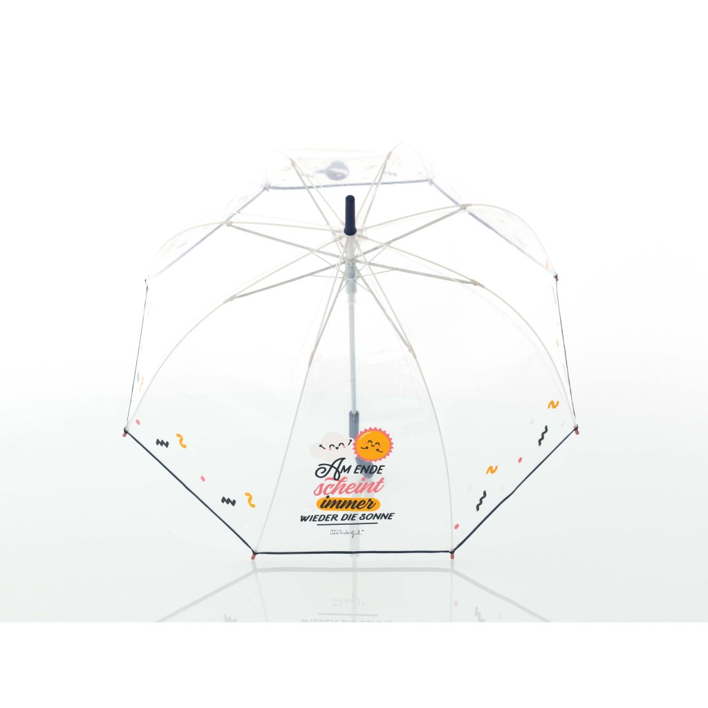 Dziecięcy parasol automatyczny z prostą rączką z przezroczystym dachem. Bardzo wysokiej jakości konstrukcja z włókna szklanego i aluminium. Dwa ostatnie segmenty wykonane z włókna szklanego, co zapobiega uszkodzeniu parasola podczas wiatru i ułatwia jego powrót do pierwotnej pozycji.