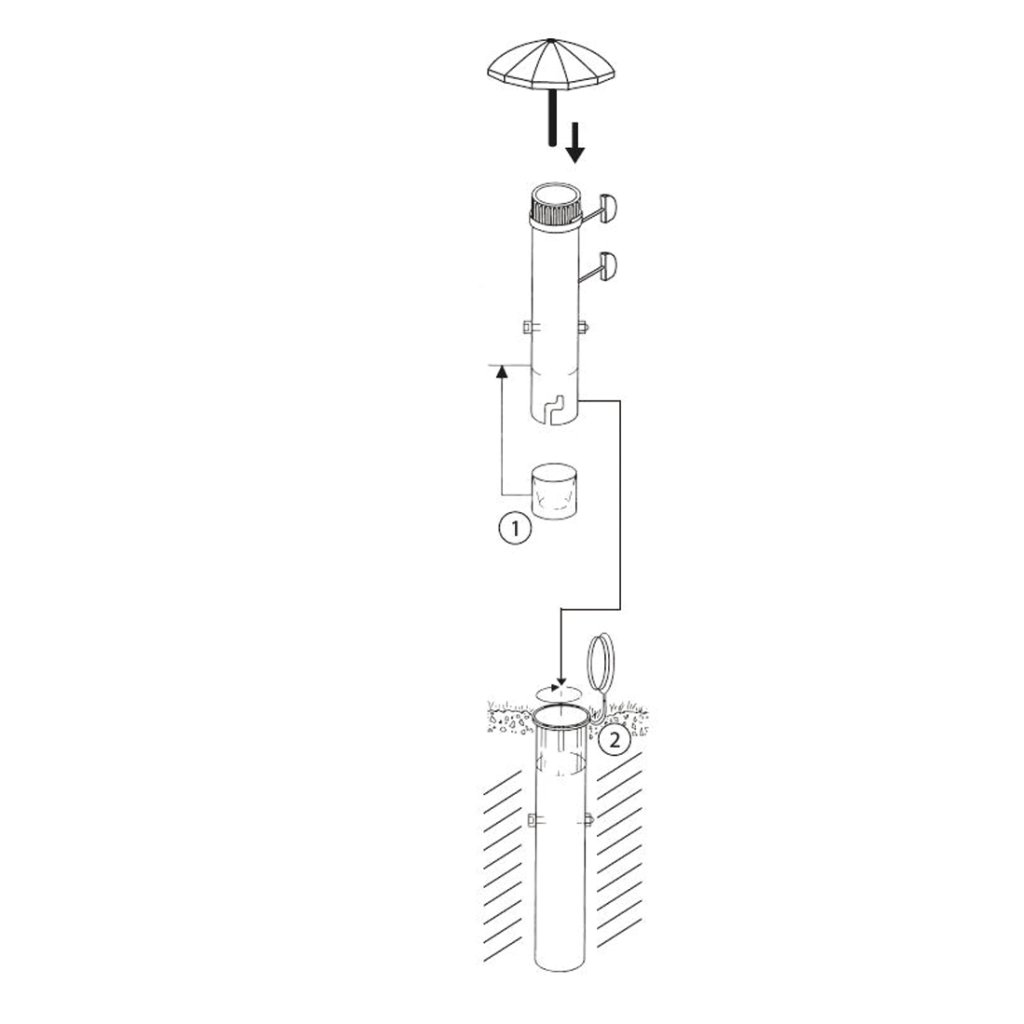 - dolna część musi być zamocowana w podłożu - minimalna wysokość 40 cm, średnica 7 cm (można zamknąć pokrywą)