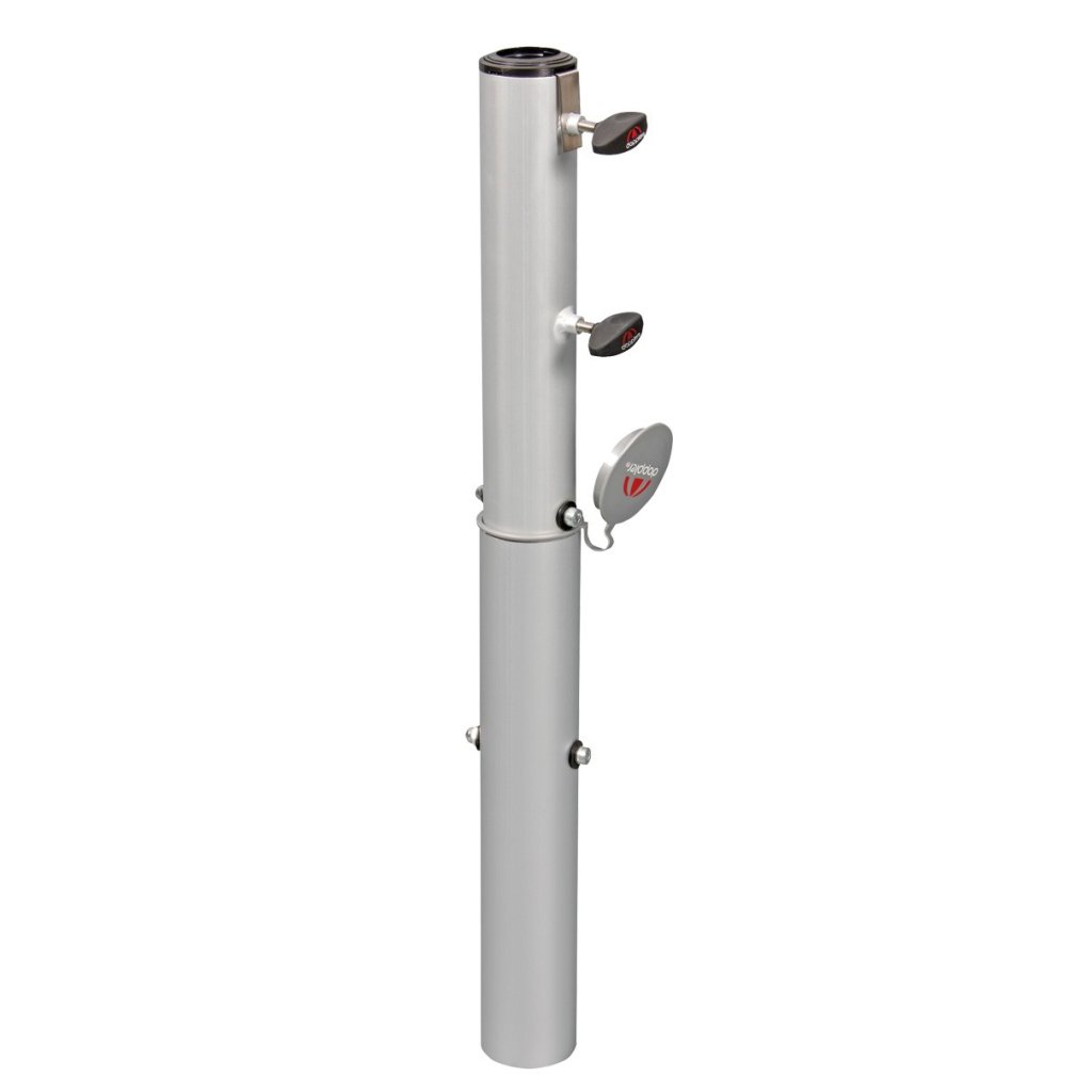 Idealny uchwyt do Twojego parasola ogrodowego. Górny uchwyt można zastosować do parasola centralnego o średnicy drążka od 32 do 60 mm, z dwoma śrubami mocującymi. Podczas przechowywania parasola można zdemontować górną część i zabezpieczyć dolną część nasadką. Dostępne są pierścienie redukcyjne (52/48/38).