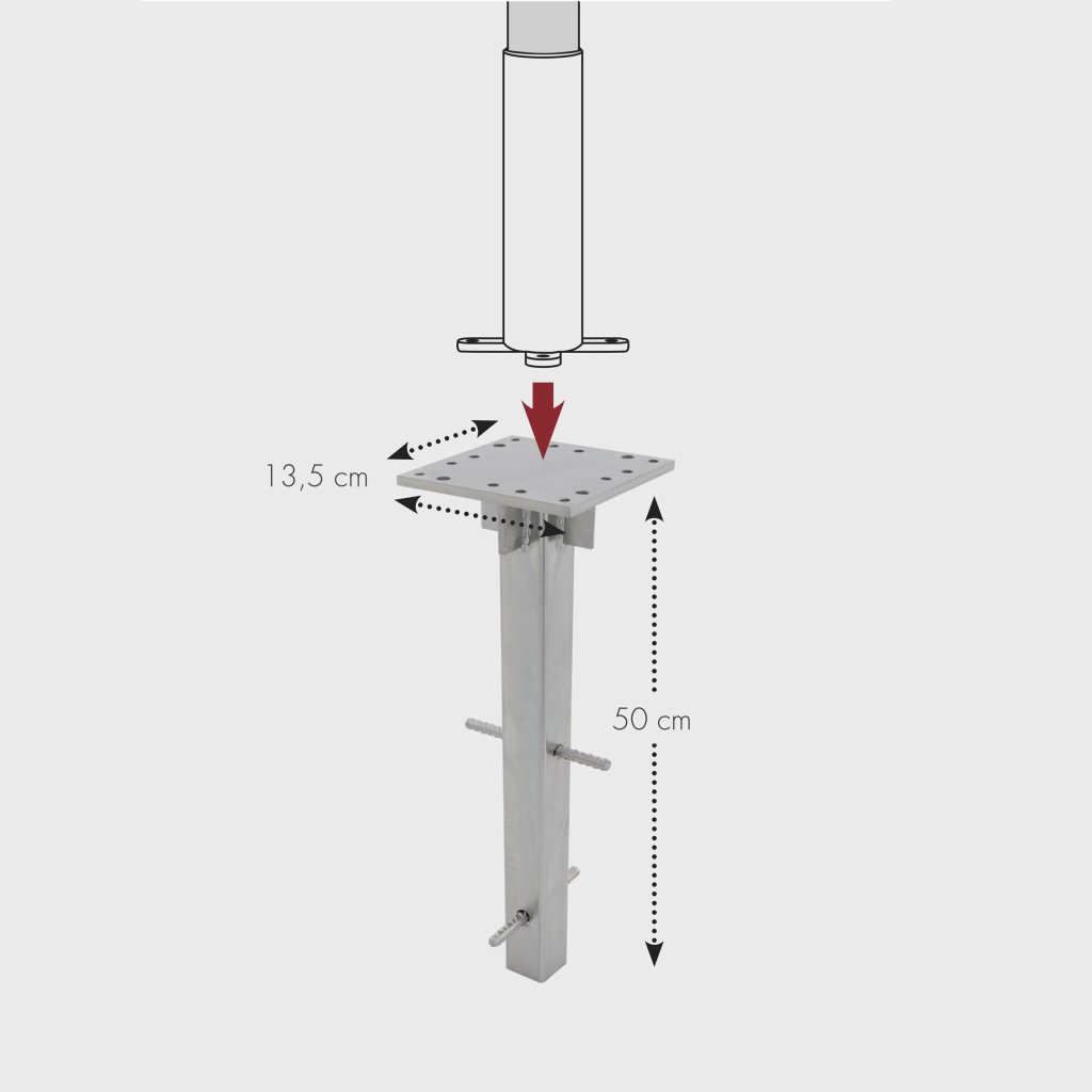 Zalecamy zabetonowanie kotwy w ziemi (minimum 40x40 cm i głębokość ok. 60 cm).