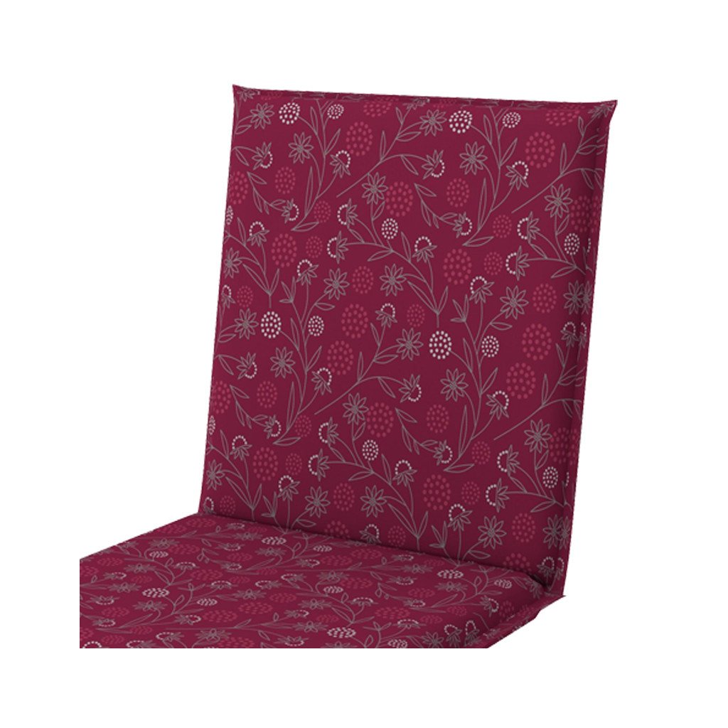 Poduszka z niskim oparciem na meble ogrodowe z serii LIVING jest w wersji z obszytym brzegiem, pikowana pierścieniowo 2x w oparciu. Mocowanie odbywa się za pomocą przesuwnego klipsa. Dzięki klipsowi można ustawić rozmiar według wymiarów i rodzaju krzesła, klips jest mocny i się nie rozciąga. Mocowanie siedziska odbywa się za pomocą dwóch sznurków w zgięciu poduszki. Grubość poduszki jest optymalna dla wszystkich rodzajów krzeseł. Wykonanie nadaje się również do trudnych warunków kawiarni, ogródków i restauracji. Pokrowiec jest nieściągalny.
